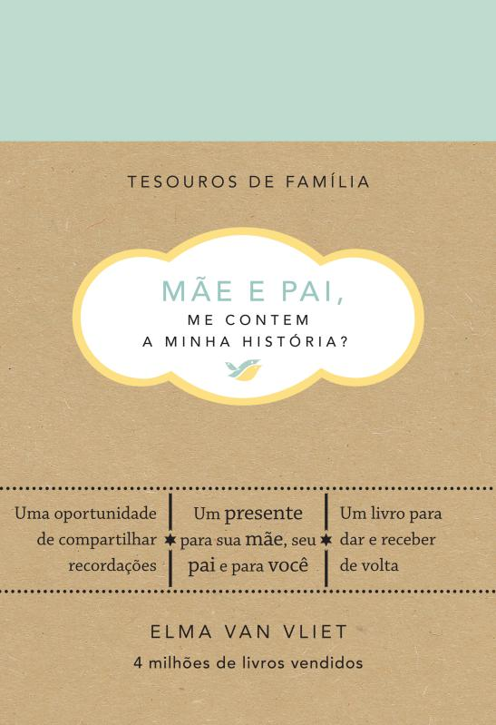 A coleção Tesouros de Família já vendeu 4 milhões de livros no mundo.Um presente para dar e receber de volta.Elma van Vliet já encantou milhares de pessoas ao redor do mundo com livros que nos ajudam a resgatar preciosas lembranças de família.Agora, em Mãe e pai, me contem a minha história?, ela oferece aos pais um espaço para registrar os acontecimentos mais marcantes da vida de seus filhos, desde o início da gestação até os 12 anos.Trazendo perguntas específicas para serem respondidas pelo pai e pela mãe – e outras tantas voltadas para os dois – este baú de recordações vai levar a família a uma deliciosa viagem de volta ao passado. O tempo passa rápido demais e as memórias da infância são muito especiais para serem esquecidas.Com espaço para escrever, colar fotografias e incluir o que mais desejar, este livro é um presente valioso. Afinal, os verdadeiros tesouros de família são as lembranças que compartilhamos com as pessoas que amamos.Normalmente não devolvemos os presentes que ganhamos, mas este livro é uma exceção à regra. A intenção é que seus pais o preencham e depois o devolvam a você.