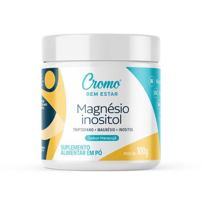 <p style="text-align: justify;">O <strong>Magnésio Inositol Cromo Bem-Estar</strong> é um suplemento alimentar composto por 50mg de L-Triptofano, 150 g de magnésio, 2g de Inositol, 10mg de vitamina B6 e 9mcg de vitamina B12. É adoçado com o edulcorante natural stevia e não possui glúten nem lactose.</p> <h2 style="text-align: justify;"><strong>Sobre os ingredientes: </strong></h2> <p style="text-align: justify;">Magnésio Bisglicinato: mineral em sua forma ativa, possui excelente absorção e está envolvido em mais de 300 reações no organismo.</p> <h2 style="text-align: justify;"><strong>Sugestão de consumo:</strong></h2> <p style="text-align: justify;">Consumir 1 medidor em 100 ml de água fria ou bebida de sua preferência e agitar até a homogeneização 1 vez ao dia ou conforme recomendação do médico ou nutricionista. </p> <p style="text-align: justify;">Conservar em ambiente fresco e ao abrigo do sol.</p> <p style="text-align: justify;">Após aberto, consumir em até 60 dias respeitando o prazo de validade.</p> <h2 style="text-align: justify;"><strong>Motivos para escolher o produto:</strong></h2> <p style="text-align: justify;">· Contém 150mg de magnésio bisglicinato;</p> <p style="text-align: justify;">· Enriquecido com 50mg de L-Triptofano, 2g de Inositol, 10mg de vitamina B6 e 9mcg de vitamina B12</p> <p style="text-align: justify;">· Não contém glúten;</p> <p style="text-align: justify;">· Zero açúcares;</p> <p style="text-align: justify;">· Zero lactose;</p> <p style="text-align: justify;">· Sabor de maracujá;</p> <p style="text-align: justify;">· Adoçado com stévia, adoçante natural.</p> <h2 style="text-align: justify;"><strong>A Marca</strong></h2> <p style="text-align: justify;">A<strong> Cromo Bem-estar</strong> é uma empresa brasileira voltada para o segmento de essências florais e suplementos nutricionais para a promoção da saúde. Desenvolve produtos naturais que são utilizados em terapia complementar, auxiliando o corpo a encontrar seu caminho para o bem-estar natural.</p>