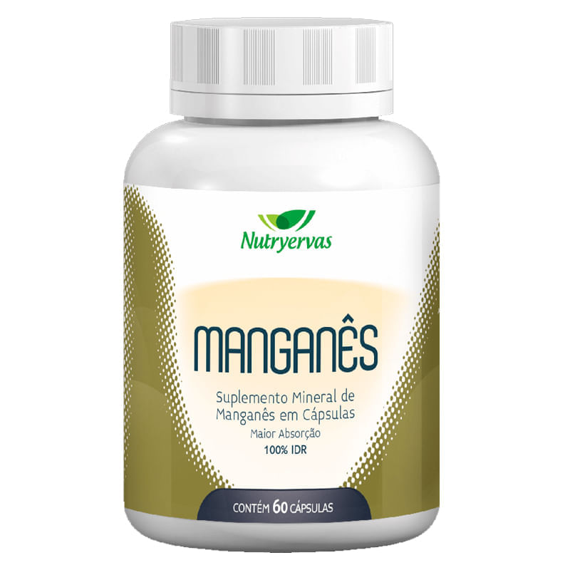 Informações técnicas do produto:<br> O Suplemento Mineral de Manganês, Nutryervas, é composto por manganês quelato.<br> <br> Uma porção fornece 1,66mg de manganês, corresponde a 100% da recomendação diária para um adulto saudável. Além disso, é livre de transgênicos, glúten e lactose.<br> <br> Recomendação de consumo:<br> Consuma 1 cápsula ao dia com 200ml de água ou conforme recomendação médica ou nutricional.<br> <br> Crianças de até 3 anos, gestantes e nutrizes só devem consumir este produto segundo a orientação de um especialista.<br> <br> Alergênicos:<br> Não contém alergênicos.<br> <br> Motivos para escolher esse produto?<br> Sem adição de açúcares<br> Fornece 1,66mg de manganês por porção<br> Livre de transgênicos<br> Sem glúten<br> Sem lactose<br> Livre de aromatizantes artificiais<br> Informações sobre a marca:<br> A Nutryervas, é uma empresa criada em 2000 com a missão de oferecer suplementos alimentares que contenham os princípios ativos das ervas e possibilitem benefícios funcionais, nutricionais e melhor qualidade de vida às pessoas.