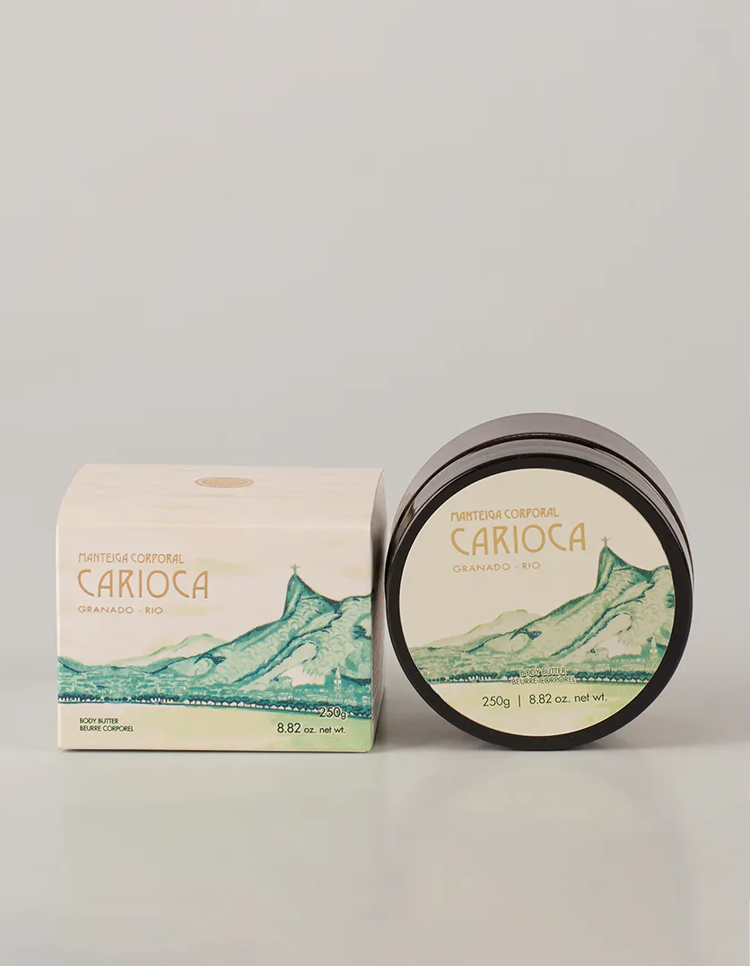 Carioca apresenta uma combinação equilibrada entre as notas cítricas e florais. Assim como o Rio, traduz a união das florestas com a brisa reconfortante do mar. Ao mesmo tempo que propõe uma leveza, tem um perfume marcante e um frescor contagiante. Manteiga Corporal Carioca e suas propriedadesCom 96% de ingredientes de origem natural, ela promove uma hidratação prolongada por 48h e é ótima para prolongar o ritual de cuidado e bem-estar. Com um toque suave, a manteiga é formulada com manteigas de murumuru e karité, e óleo de castanha do Brasil. Ela pode ser usada diariamente na pele limpa e seca sempre que necessário ou aplicada diretamente em áreas muito ressecadas. A embalagem do produto é fabricada com resina pós consumo (PCR) e plástico 100% reciclado, o que reduz a pegada de carbono e o descarte plástico no meio ambiente. Não possui parabenos e corantes em sua formulação. Produto vegano e não testado em animais.Conteúdo: 250g