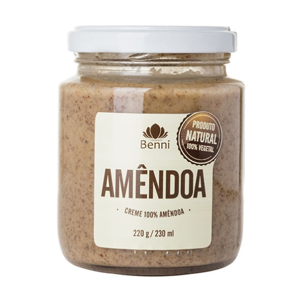 Informações técnicas do produto:<br> A Manteiga de Amêndoa, da Benni é elaborada através de um processo especial onde a amêndoa é torrada na sua casca natural e moída, preservando maior parte de seus nutrientes. A amêndoa é fonte natural de gorduras boas, fibras e nutrientes.<br> <br> Recomendação de consumo:<br> Pode ser consumida pura, ou como recheio em lanches, na tapioca, em receitas, ou conforme desejar. <br> <br> Por que escolher esse produto?<br> Com ingredientes selecionados<br> 100% natural<br> Sem glúten<br> Sem adição de conservantes artificiais<br> Sem lactose<br> Livre de gorduras trans