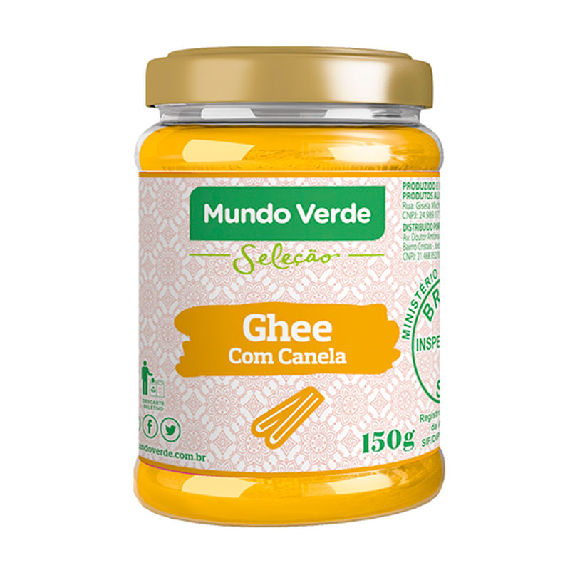 <p>A <strong>Manteiga Ghee com Canela Mundo Verde Seleção 150g</strong>, não contém lactose, pois passa por um processo de clarificação. Não contém Glúten, gordura trans e sódio.</p> Alergênicos: <p>Contém derivados do leite de vaca.</p> Sugestão de consumo: <p>Pode ser consumida com pães, torradas e biscoitos. Por ser resistente à altas temperaturas, ideal para ser utilizada em preparações culinárias.</p> Motivos para escolher o produto: <ul> <li> <p>90 kcal por porção</p> </li> <li> <p>Não contém Glúten</p> </li> <li> <p>Não contém lactose</p> </li> <li> <p>Livre de gorduras trans</p> </li> <li> <p>Maior durabilidade</p> </li> <li> <p>Sem aditivos artificiais</p> </li> </ul> Sobre a marca: <p>A <strong>Mundo Verde Seleção</strong> é uma linha de produtos para quem quer ter uma vida mais saudável e gostosa. A marca quer ajudar a colocar essas escolhas em prática. A paixão e conhecimento pelos alimentos, nutrientes, aromas e sabores permitem a seleção das melhores opções saudáveis para qualquer ocasião. Conheça a linha completa <strong>Mundo Verde Seleção</strong>, com inúmeros produtos saudáveis e gostosos para facilitar seu dia a dia.</p>