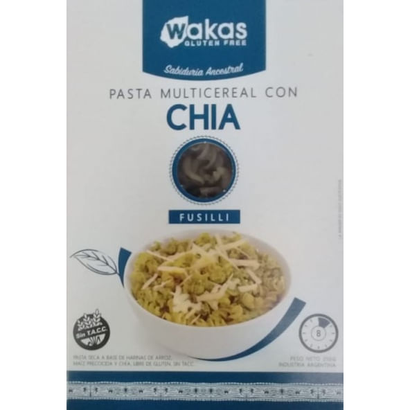 <p>Informações sobre o produto:<br><br>A Pasta Multicereal com Chia, da Wakas, 250g é um macarrão feito à base farinha de arroz, de farinha de milho, de farinha de chia e água. É produzido em uma empresa que possui certificado de produtos sem glúten, por isso é uma ótima opção para celíacos/intolerantes à glúten.<br><br>Além disso, é vegano, sem adição de sal e sem alérgenos e oferece 2,4g de fibras por porção.<br><br>Recomendações de consumo:<br><br>Pode ser consumido como uma pasta tradicional (macarrão) para adultos e crianças, além do grupo celíaco da população. É prático, oferece macronutrientes e fibras.<br><br>Por que escolher esse produto?<br>Prático<br>Sem glúten<br>Sem adição de sal<br>Sem alérgenos<br>Vegano<br>Certificado de empresa glúten free<br><br><br><br><br>Sobre a marca:<br><br>A Wakas é uma empresa jovem criada em 2016, com o objetivo de desenvolver alimentos saudáveis de grande diferenciação, de acordo com as necessidades e tendências globais atuais. É a empresa líder na Argentina em massas secas sem glúten. Possui uma das plantas industriais mais importantes do país, concebida para a fabricação de massas sem glúten e alimentos relacionados e trabalham com os mais altos padrões de qualidade e usamos matérias-primas consideradas "superalimentos".<br><br></p>