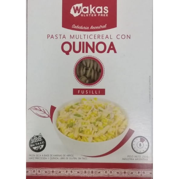 <p>Informações sobre o produto:<br><br>A Pasta Multicereal com Quinoa, da Wakas, 250g é um macarrão feito à base farinha de arroz, de farinha de milho, de farinha de quinoa e água. É produzido em uma empresa que possui certificado de produtos sem glúten, por isso é uma ótima opção para celíacos/intolerantes à glúten.<br><br>Além disso, é vegano, sem adição de sal e sem alérgenos.<br><br>Recomendações de consumo:<br><br><br>Pode ser consumido como uma pasta tradicional (macarrão) para adultos e crianças, além do grupo celíaco da população. É prático, oferece macronutrientes e fibras.<br><br>Por que escolher esse produto?<br>Prático<br>Sem glúten<br>Sem adição de sal<br>Sem alérgenos<br>Vegano<br>Certificado de empresa glúten free<br>Sobre a marca:<br><br>A Wakas é uma empresa jovem criada em 2016, com o objetivo de desenvolver alimentos saudáveis de grande diferenciação, de acordo com as necessidades e tendências globais atuais. É a empresa líder na Argentina em massas secas sem glúten. Possui uma das plantas industriais mais importantes do país, concebida para a fabricação de massas sem glúten e alimentos relacionados e trabalham com os mais altos padrões de qualidade e usamos matérias-primas consideradas "superalimentos".<br><br><br><br><br></p>