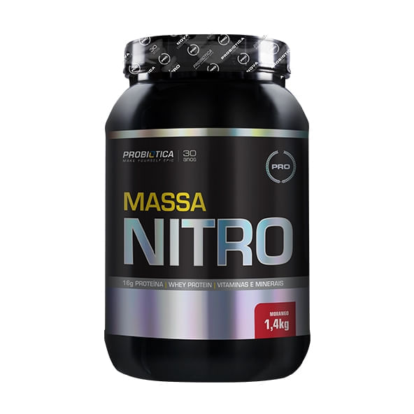 Informações técnicas do produto: <br> Massa Nitro NO2 sabor morango, da Probiótica é um suplemento hipercalórico que combina Proteínas (whey protein isolada e concentrada, albumina, caseína, proteína isolada de soja, proteína hidrolisada do trigo), carboidratos simples e complexos (como a maltodextrina e a glicose),12 vitaminas e 9 minerais. <br> <br> Recomendações de uso:<br> Adicione 9 colheres de sopa (em média 120 g) de MASSA NITRO NO2®em 250ml (1 copo) de água ou leite desnatado. Bata no mixer, coqueteleira ou liquidificador. Tomar 3 shakes ao longo do dia, sendo antes e depois do treino e/ou no intervalo das refeições. Três shakes preparados com leite fornecem 1600 calorias.<br> <br> Sobre a marca: <br> A Probiótica, é uma empresa que ao longo dos anos veio se aperfeiçoando na produção de suplementos alimentares, e na atualidade é considerada umas das melhores marcas nacionais encontrados no mercado. A empresa utiliza as melhores matérias primas e de altíssima qualidade, para oferecer aos seus consumidores, um produto seguro e de confiança.
