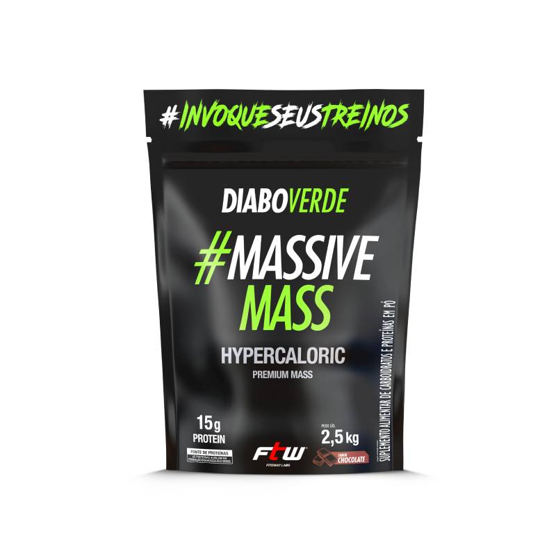 <p><span>O </span><b>Massive Mass Hypercaloric Diabo Verde</b><span> é um suplemento hipercalórico formulado com maltodextrina e waxy maize como fontes de carboidratos. Cada porção fornece 15 g de proteína, combinando whey protein concentrado e proteína de soja concentrada. Com sabor chocolate, é uma opção prática e saborosa para complementar a ingestão calórica e proteica no dia a dia.</span></p> <h2><b>Sugestão de consumo: </b></h2> <p><span>Bata no liquidificador 5,5 medidas dosadoras (160 g) em 300 ml de água ou leite gelado, até completa homogeneização. Recomenda-se o consumo pela manhã e entre as principais refeições ou conforme orientação profissional.</span></p> <h2><b>Motivos para escolher o produto: </b></h2> <ul> <li aria-level="1"><span>Fornece 15 g de proteína;</span></li> <li aria-level="1"><span>Opção prática e saborosa para complementar a ingestão calórica diária;</span></li> <li aria-level="1"><span>Sem glúten.</span></li> </ul> <h2><b>A marca:</b></h2> <p><span>A </span><b>FTW</b><span> nasceu do espírito </span><i><span>For The Win</span></i><span>, com a missão de oferecer suplementos de alta qualidade para quem leva o esporte a sério. Mais do que atender às demandas do desempenho físico, a marca inspira atletas de todos os níveis a superarem seus próprios limites, com produtos desenvolvidos para potencializar resultados. Com uma linha completa e rigorosamente testada, a FTW está presente na rotina de quem busca evolução constante. Cada fórmula carrega o compromisso com a performance, a saúde e a superação.</span></p>