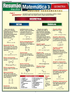 Este Resumão traz os conceitos básicos da geometria: retas, ângulos, polígonos, triângulos, quadriláteros, círculos, elipses e sólidos (poliedros, prismas, pirâmides e sólidos com superfícies curvas). Você encontra ainda as definições e os tipos de retas, ângulos e polígonos, além da classificação dos triângulos e dos quadriláteros (paralelogramo, retângulo, losango, quadrado e trapézio), entre outros.