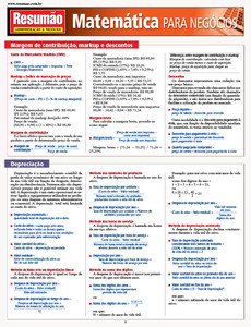 Um guia prático para relembrar conceitos e resolver dúvidas de última hora, explicados de forma clara e direta. Serve aos estudantes que precisam entender a matéria e aos profissionais que querem relembrar alguns conceitos. Escrito e revisado por especialistas, seu conteúdo está organizado de maneira que você possa encontrar rapidamente as respostas para as suas perguntas e os temas de seu interesse: além de uma revisão dos conhecimentos básicos de matemática, nas áreas de aritmética, álgebra e estatística, o Resumão também aborda temas como margem de contribuição, mark-up e descontos, juros, relatórios financeiros, folha de pagamento e estoque, entre outros temas. Direto ao ponto, fácil de guardar, ótimo para relembrar.