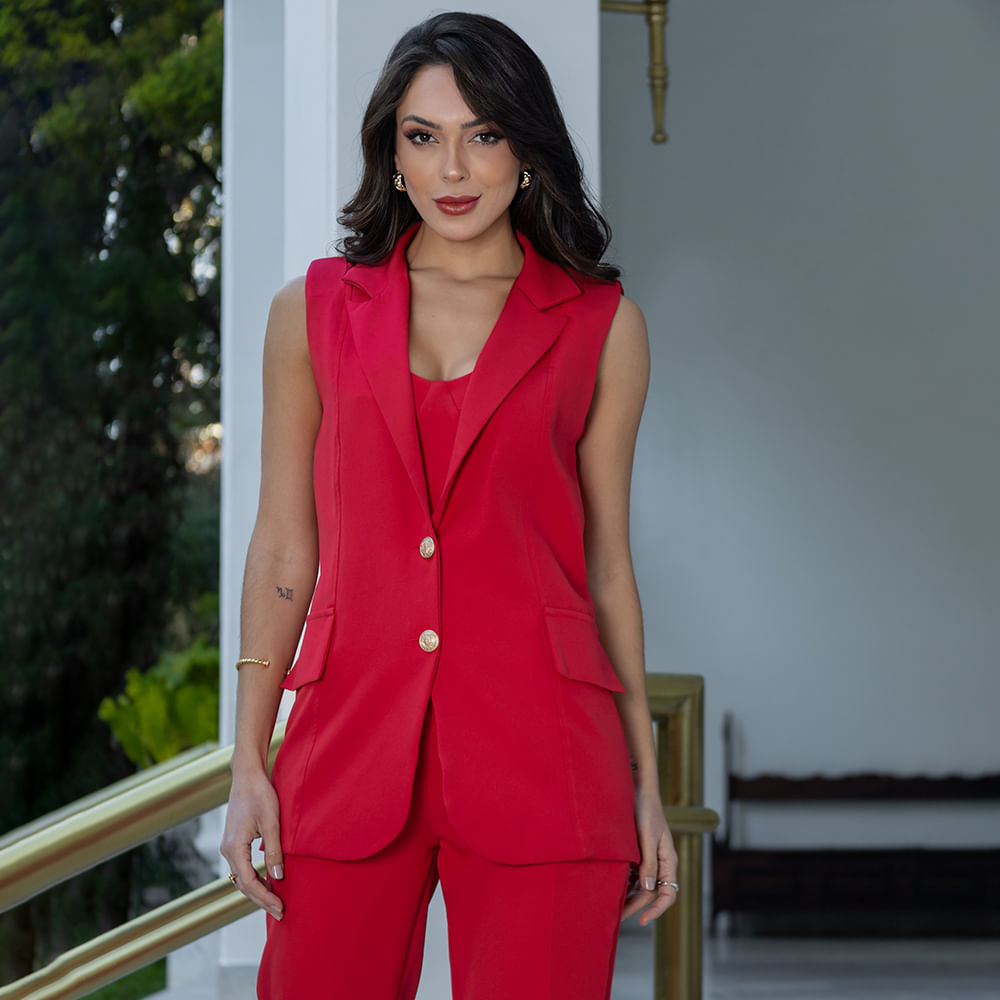 Esta peça ousada e moderna eleva o tradicional colete de alfaiataria a um nível totalmente novo, adicionando um toque de ousadia e inovação aos guarda-roupas contemporâneos; O max colete de alfaiataria é caracterizado por sua silhueta ampla e alongada, que se estende além dos limites do colete convencional; Essa expansão cria um visual dramaticamente elegante que é ao mesmo tempo audacioso e sofisticado; O max colete pode ser usado como parte de um conjunto de terno completo, adicionando uma dimensão única à aparência formal; Mas sua verdadeira força é revelada quando usado de forma autônoma; Ele se torna uma peça central que pode transformar um look simples em algo verdadeiramente estiloso; <br>.<br><br>Produto: Max Colete Alfaiataria Vermelho <br>Categoria: Colete<br>Cor: Vermelho <br>Tecido: Alfaiataria<br>Composição: 95% Poliester/ 5% Elastano<br>Peso : 300g<br>Gênero: Feminino<br>Marca: Vértice<br><br>Medidas da Modelo<br>Altura: 1,70 cm<br>Busto: 89 cm<br>Cintura: 65 cm<br>Quadril: 94 cm<br>A MODELO VESTE O TAMANHO P<br>.<br>Medidas.<br>P - Busto até 90 cm l Cintura até 71 cm l Quadril até 99 Cm.<br>M - Busto até 96 cm l Cintura até 77 cm l Quadril até 102 cm.<br>G - Busto até 102 cm l Cintura 83 cm l Quadril 111 cm.<br>GG - Busto 108 cm l Cintura até 89 cm l Quadril até 117 cm.<br>EGG - Busto até 114 cm l Cintura até 95 cm l Quadril até 123 cm.<br> <br> <br> <br> <br> <br> <br> <br> <br> <br> <br>