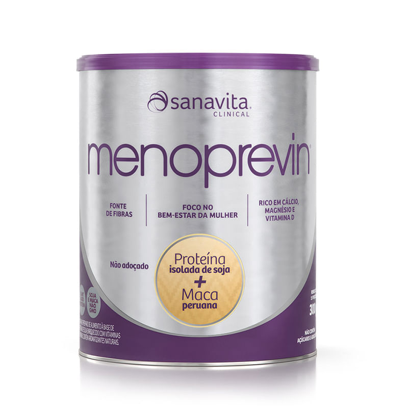 <p></p><p> </p> <p></p>Informações técnicas do produto: <p></p><p>O <strong>Menoprevin</strong><strong>®</strong>, da <strong>Sanavita,</strong> é um pó para o preparo de alimentos à base de proteína isolada de soja, maca peruana, fibra prebiótica, vitaminas e minerais formulado especialmente para <strong>suprir as deficiências das mulheres mais maduras</strong>.</p> <p></p><p>Cada porção do produto fornece <strong>143mg de triptofano</strong>, além disso, é rico em cálcio, magnésio, zinco, vitaminas C, D e E.</p> <p></p>Sobre os ingredientes: <p></p><p>Confira mais informações sobre alguns ingredientes do produto.</p> <p></p><ul> <p></p> <li> <strong>Proteína isolada de soja:</strong> obtida do grão de soja não transgênico, livre de organismos geneticamente modificados (<em>GMO-free</em>). Alimento de alto valor biológico, além disso, é fonte natural de <strong>isoflavonas</strong>.</li> <p></p> <li> <strong>Maca Peruana:</strong> raiz fonte de diversos nutrientes e substâncias bioativas, utilizada na alimentação desde o tempo dos Incas.</li> <p></p> <li> <strong>Cálcio, magnésio e vitamina D:</strong> auxiliam na <strong>formação e manutenção dos ossos</strong>.</li> <p></p> <li> <strong>Vitaminas C e E:</strong> apresentam <strong>ação antioxidante</strong> que auxilia na proteção dos danos causados pelos radicais livres.</li> <p></p> </ul> <p></p>Alérgicos: <p></p><p>Contém derivados de soja. Pode conter derivados de leite.</p> <p></p>Recomendação de consumo: <p></p><p>Adicione 1 porção (20g) em 250 mL de água ou bebida de sua preferência e misture até completa dissolução.</p> <p></p><p><strong>Dica: </strong>pode ser consumido com qualquer bebida, como água, leite, sucos ou iogurtes, além de receitas doces ou salgadas.</p> <p></p>Por que escolher este produto? <p></p><ul> <p></p> <li>Soja e maca peruana <em>GMO-free</em> </li> <p></p> <li>Maca peruana extraída sem solventes</li> <p></p> <li>Fonte de triptofano</li> <p></p> <li>Zero lactose</li> <p></p> <li>Sem glúten</li> <p></p> <li>Sem adição de açúcares</li> <p></p> <li>Livre de conservantes, corantes ou aromas artificiais</li> <p></p> <li>Sem maltodextrina</li> <p></p> <li>Low carb</li> <p></p> <li>Plant based (100% origem vegetal)</li> <p></p> <li>Baixo índice glicêmico</li> <p></p> </ul> <p></p>Sobre a marca: <p></p><p>A <strong>Sanavita</strong> é uma das principais empresas produtoras de alimentos saudáveis do Brasil, especializada no desenvolvimento de alimentos funcionais e especiais. Graças a excelente qualidade de seus produtos e à sua origem científica, conquistou a fidelidade dos profissionais de saúde e dos consumidores em todo o país.</p>