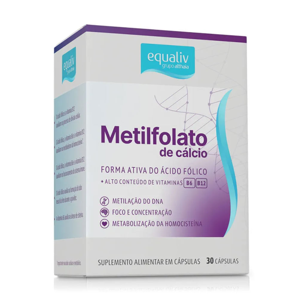 <p dir="ltr">O <strong>Metilfolato de Cálcio Equaliv</strong>, é um suplemento alimentar de vitamina B9, em sua forma ativa do ácido fólico metilado, que possui melhor absorção, acrescido de B6 e B12, em capsulas. </p> <h2 dir="ltr">Sobre o ingrediente:</h2> <p dir="ltr"><strong>Vitamina B9:</strong> é uma vitamina importante formação do tubo neural do feto durante a gestação, é importante para a síntese de aminoácidos e funcionamento do sistema imune.</p> <h2 dir="ltr">Sugestão de consumo:</h2> <p dir="ltr">Consumir 1 comprimido ao dia ou conforme orientação do médico ou nutricionista.</p> <h2 dir="ltr">Motivos para escolher o produto:</h2> <ul> <li dir="ltr" aria-level="1"> <p dir="ltr" role="presentation">Contém 400 ug de Vitamina B9 em sua forma ativa; </p> </li> <li dir="ltr" aria-level="1"> <p dir="ltr" role="presentation">Contém 1,9 mg de Vitamina B6; </p> </li> <li dir="ltr" aria-level="1"> <p dir="ltr" role="presentation">Contém 2,6 ug de Vitamina B12; </p> </li> <li dir="ltr" aria-level="1"> <p dir="ltr" role="presentation">Ácido fólico biodisponível, possui melhor absorção;</p> </li> <li dir="ltr" aria-level="1"> <p dir="ltr" role="presentation">Sem corantes, conservantes e aromatizantes artificiais;</p> </li> <li dir="ltr" aria-level="1"> <p dir="ltr" role="presentation">Sem glúten e sem adição de açúcares. </p> </li> </ul> <h2 dir="ltr">A Marca</h2> <p dir="ltr">A <strong>Equaliv </strong>é uma marca brasileira que une inovação, tecnologia e ciência para desenvolver suplementos alimentares de alta qualidade. Seu portfólio é pensado para atender diferentes necessidades do dia a dia, oferecendo fórmulas seguras e eficazes, elaboradas com matérias-primas selecionadas e processos que garantem pureza e confiabilidade. Com o compromisso de promover saúde, bem-estar e mais vitalidade, a Equaliv busca apoiar escolhas inteligentes e conscientes, sempre com foco na qualidade de vida.</p>