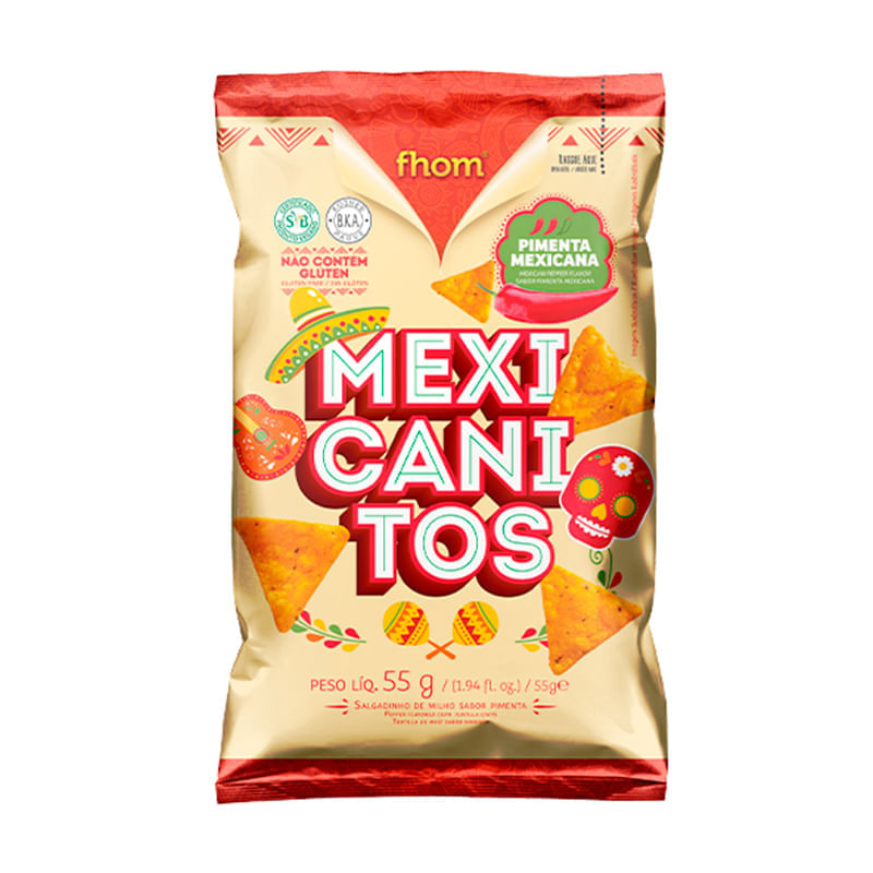 <p>Os <strong>Mexicanitos Pimenta Fhom 55g</strong> é uma deliciosa opção de salgadinho que proporciona o característico sabor da pimenta mexicana.</p>_x000D_ Sugestão de consumo:_x000D_ <p>Pode ser consumido como lanche intermediário ou em qualquer momento do dia. É uma ótima opção de snack.</p>_x000D_ Benefícios:_x000D_ <ul>_x000D_ <li>_x000D_ <p>Sem glúten</p>_x000D_ </li>_x000D_ <li>_x000D_ <p>Com sal light</p>_x000D_ </li>_x000D_ <li>_x000D_ <p>Zero gordura trans</p>_x000D_ </li>_x000D_ <li>_x000D_ <p>Vegano</p>_x000D_ </li>_x000D_ <li>_x000D_ <p>Kosher</p>_x000D_ </li>_x000D_ </ul>_x000D_ Sobre a marca:_x000D_ <p>A <strong>Fhom</strong> foi criada em 1994 com a ideia de fornecer produtos de qualidade ao seu público. Pensando nisso, a marca procura sempre abranger as mais diversas demandas do público, se dedicando inteiramente aos seus clientes. É possível atualmente encontrar diversas opções veganas e Kosher em seu catálogo.</p>