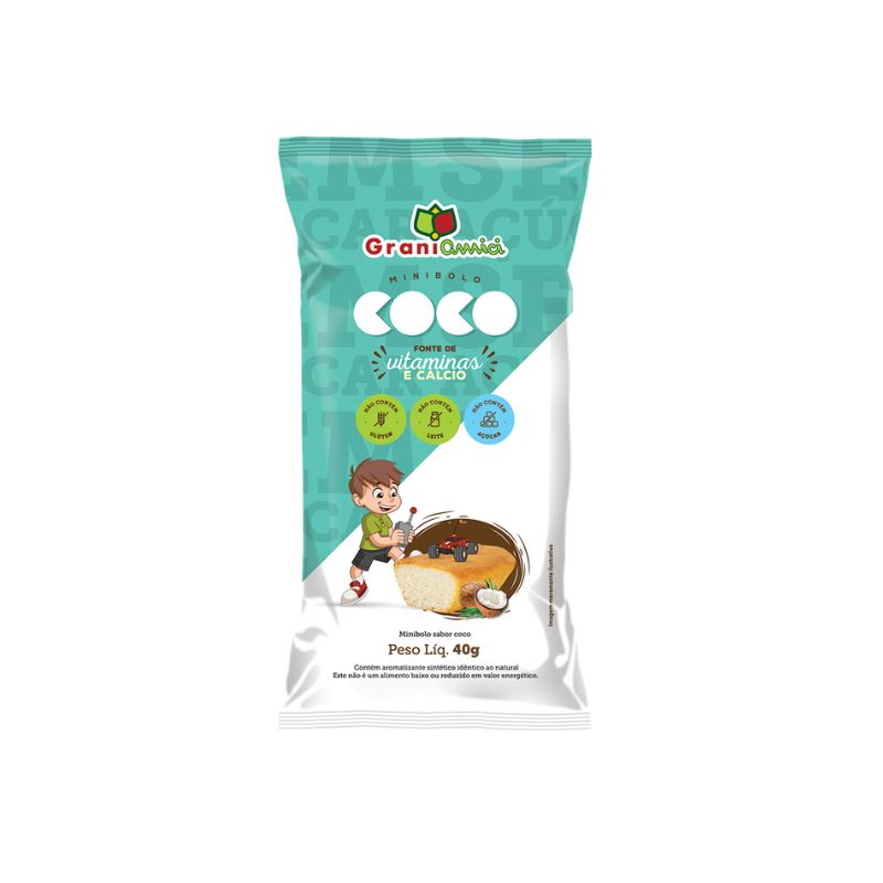 <h2 style="text-align: justify;"><strong>Mini Bolo</strong> <strong>Coco Grani Amici 40g</strong></h2> <h2 style="text-align: justify;">O <strong>Mini bolo </strong>sabor<strong> coco Grani Amici</strong>, é elaborado com farinha de arroz e coco ralado, não contém glúten, é sem adição de leite e açúcar. É enriquecido com cálcio e vitaminas do complexo B e D3 e possui uma textura bem leve e saborosa. Muito prático para o dia a dia.</h2> <h2 style="text-align: justify;"><strong>Sobre os ingredientes:</strong></h2> <h2 style="text-align: justify;"><strong>Alérgicos</strong>: contém ovos e derivados de soja<br /><strong>Pode conter:</strong> amêndoas e castanha do caju.</h2> <h2 style="text-align: justify;"><strong>Sugestão de consumo:</strong></h2> <h2 style="text-align: justify;"><span style="">Ideal para consumir em lanches intermediários. Tenha sempre na bolsa ou na mochila uma opção saudável e de fácil transporte. Para lanches escolares, trabalho, academia, faculdade, ou em qualquer outro lugar. </span><strong> </strong></h2> <h2 style="text-align: justify;"><strong>Motivos para escolher o produto:</strong></h2> <h2 style="text-align: justify;">● Produto sem glúten; </h2> <h2 style="text-align: justify;">● Sem lactose;</h2> <h2 style="text-align: justify;">● Sem leite (APLV);</h2> <h2 style="text-align: justify;">● Enriquecidos com cálcio, vitaminas do complexo B e D3</h2> <h2 style="text-align: justify;">● Adoçado com adoçante natural </h2> <h2 style="text-align: justify;"> </h2> <h2 style="text-align: justify;"><strong>A Marca</strong></h2> <h2 style="text-align: justify;">Fundada em 2010, a Grani Amici tem o propósito de oferecer bem-estar e inclusão às pessoas com intolerâncias e alergias alimentares, através da fabricação dos melhores panificados livres de glúten, leite e lactose! Os alimentos Grani Amici são elaborados com a segurança que nossos consumidores merecem e precisam. Destinados a todos aqueles que querem viver livres de preocupações na hora de se alimentar!</h2>