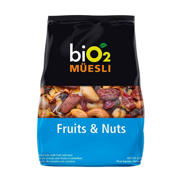 <p>Informações técnicas do produto:<br>O Müesli Frutas e Castanhas, da BiO2, é composto por uva passa, flocos de milho, flocos de quinoa, flocos de amaranto, amendoim, banana passa, maçã, coco, cranberry, castanha de caju, amêndoas e castanha do Pará, são oleaginosas que fornecem gorduras insaturadas (gorduras boas), fibras, proteínas de origem vegetal, vitamina E, selênio, magnésio, potássio, zinco e ômega 3.<br><br>Por conta dessa gama de nutrientes, vem conquistando o paladar dos brasileiros e estando cada vez mais presente na dieta dessa população.<br><br>Sobre a marca:<br>A BiO2 é uma marca com mais de 10 anos de tradição e experiência, oferecendo alimentos verdadeiramente orgânicos e naturais. Foi a primeira que recebeu o certificado de barras orgânicas do Brasil, além das barras traz para o mercado novas opções de snacks, suplementos e mais 12 linhas de produtos.<br><br>Recomendações de consumo:<br>Pode ser consumido na alimentação diária, principalmente devido à sua composição nutricional, textura e variedade de sabores, nos lanches intermediais, no trabalho ou em casa pela sua praticidade.<br><br>O consumo deste produto deve ser acompanhado da ingestão de líquidos e estar associado a uma dieta equilibrada e hábitos de vida saudáveis.<br><br>Informação sobre alergênicos:<br>Pode conter traços de avelã, pistache e soja.<br><br>Por que escolher esse produto?<br>Não contém glúten<br>Livre de corantes e aromas artificias<br>Isento de conservantes<br>Produto vegano<br>Sem adoçantes artificiais<br>Zero açúcar</p>