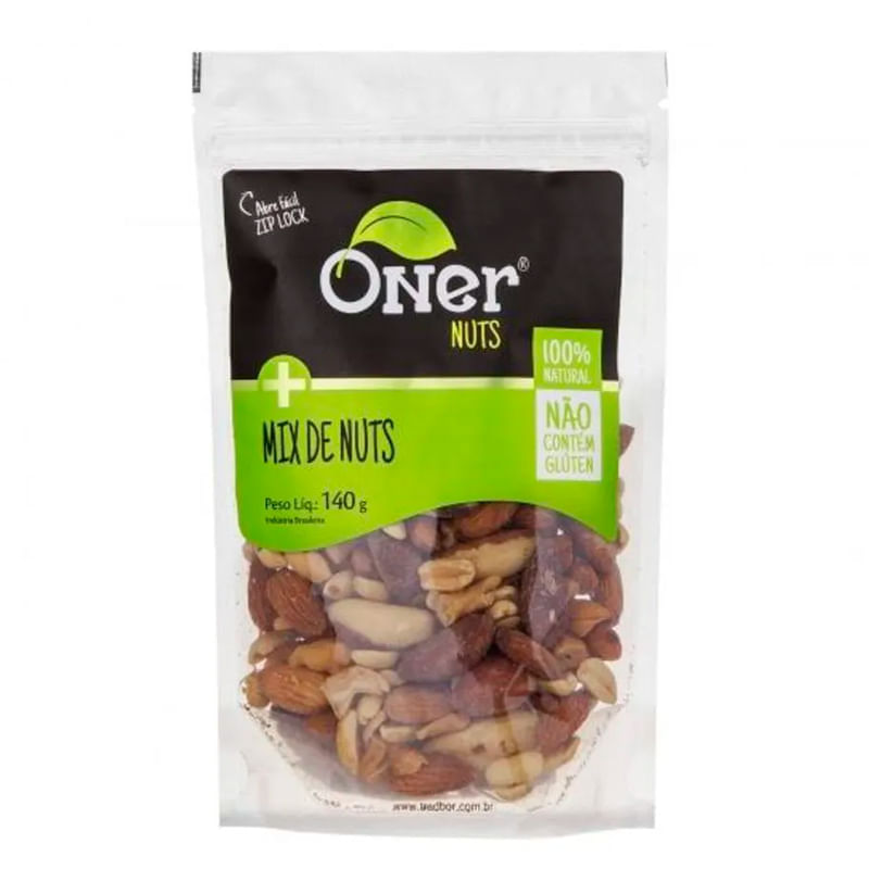 <p>Mix Nuts, 140g, Oner é um snack 100% natural, feito apenas com amendoim sem sal, castanha-do-Pará, amêndoa e castanha-de-caju, ideal para ser consumido como uma opção de lanche saudável. Não contém glúten, lactose ou adição de aditivos alimentares, como corantes e conservantes artificiais.<br><br>Informações sobre alergênicos:<br>Contém amendoim, castanhas e amêndoas.<br><br>Recomendação de consumo:<br>Pode ser consumido a qualquer hora do dia, no intervalo das refeições, ou adicionado em salada de frutas, açaí, entre outros.<br><br>Por que escolher esse produto?<br>Sem lactose<br>100% natural<br>Sem adição de açúcar<br>Livre de gorduras trans<br>Sem glúten</p>