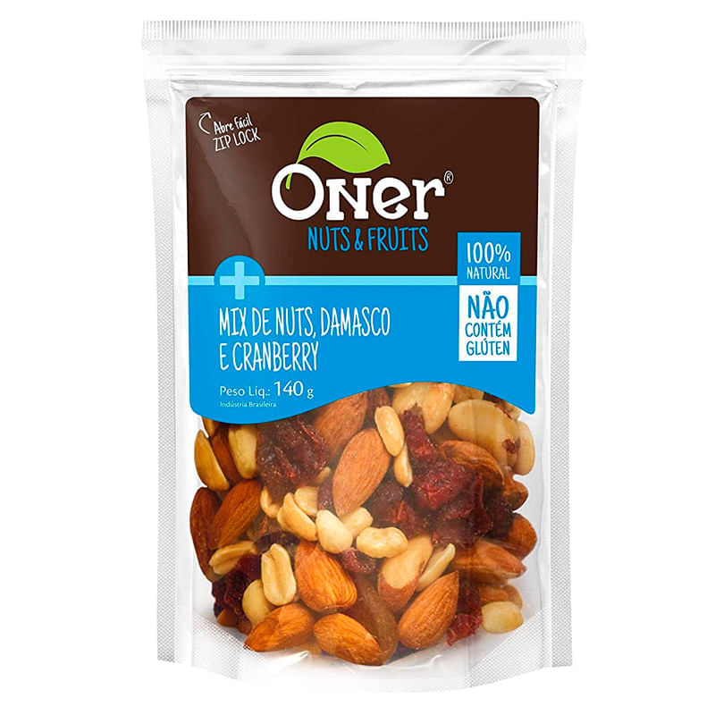 <p>Mix de Nuts, Damasco e Cranberry, 140g, Oner é um snack 100% natural, feito apenas com amendoim sem sal, castanha do Pará, damasco, amêndoa e cranberry, ideal para ser consumido como uma opção de lanche saudável. Não contém glúten, lactose ou adição de aditivos alimentares, como corantes e conservantes artificiais.<br><br>Informações sobre alergênicos:<br>Contém amendoim, castanhas e amêndoas.<br><br>Recomendação de consumo:<br>Pode ser consumido a qualquer hora do dia, no intervalo das refeições, ou adicionado em salada de frutas, açaí, entre outros.<br><br>Por que escolher esse produto?<br>Sem lactose<br>100% natural<br>Sem adição de açúcar<br>Livre de gorduras trans<br>Sem glúten</p>