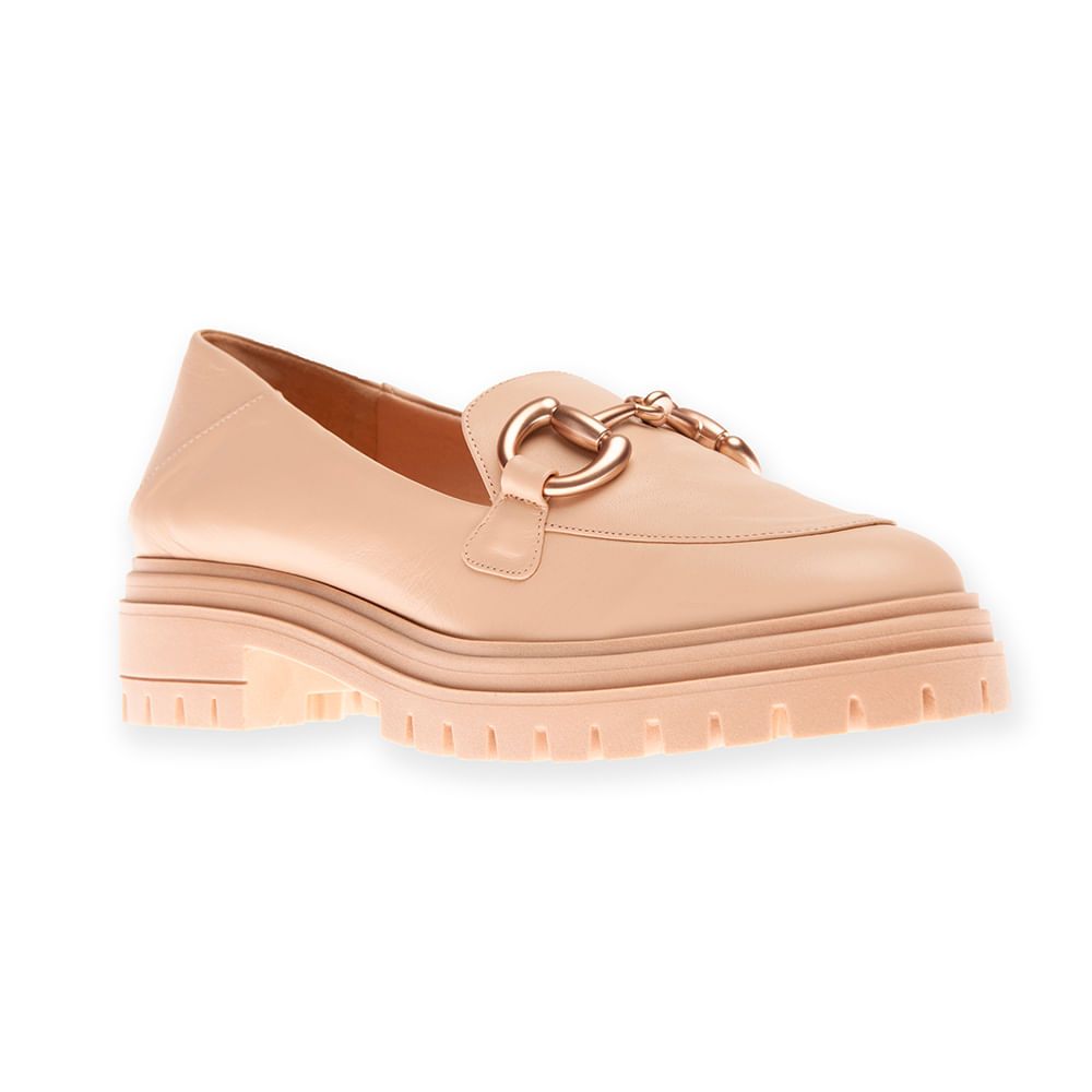 Sapato loafer preto feminino confeccionado em couro e forro em material sintético; Modelo conta com bico arredondado, salto tratorado posterior e frontal, cabedal pespontado com detalhe de fivela dourada e solado em PVC Expandido, garantindo conforto ao caminhar; O loafer preto é discreto e pode ser perfeito para o seu office look; Invista com calça de alfaiataria, camisa colorida e arremate com uma bolsa tiracolo; O loafer femininoé o queridinho do momento e pode ser usado de forma casual ou formal, por isso, é o calçado favorito das fashionistaas por ser vesrsatil e confortavel; <br><br>.<br><br><br><br>Produto: Mocassim Tratorado Couro Nude <br>Categoria: Mocassim<br>Tipo de Salto: Sem Salto <br>Altura do Salto: 4 cm<br>Tipo de Bico: Redondo<br>Material Externo: Couro <br>Peso: 0,950 g<br>Solado: PVC EXPANDIDO <br>Forma : Normal compre a sua numeração que costuma usar<br>Cor: Nude <br>Gênero: Feminino<br>Marca: Vértice<br><br><br><br><br><br><br><br><br><br><br><br><br><br><br><br><br><br>