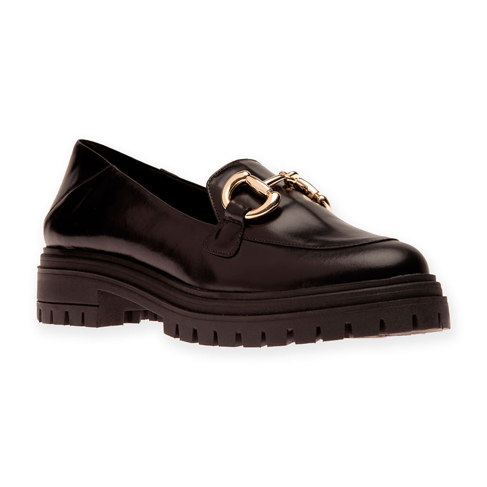 Sapato loafer preto feminino confeccionado em couro e forro em material sintético; Modelo conta com bico arredondado, salto tratorado posterior e frontal, cabedal pespontado com detalhe de fivela dourada e solado em PVC Expandido, garantindo conforto ao caminhar; O loafer preto é discreto e pode ser perfeito para o seu office look; Invista com calça de alfaiataria, camisa colorida e arremate com uma bolsa tiracolo; O loafer femininoé o queridinho do momento e pode ser usado de forma casual ou formal, por isso, é o calçado favorito das fashionistaas por ser vesrsatil e confortavel; <br><br>.<br><br><br><br>Produto: Mocassim Tratorado Couro Preto<br>Categoria: Mocassim<br>Tipo de Salto: Sem Salto <br>Altura do Salto: 4 cm<br>Tipo de Bico: Redondo<br>Material Externo: Couro <br>Peso: 0,950 g<br>Solado: PVC EXPANDIDO <br>Forma : Normal compre a sua numeração que costuma usar<br>Cor: Preto<br>Gênero: Feminino<br>Marca: Vértice<br><br><br><br><br><br><br><br><br><br><br><br><br><br><br><br><br><br>