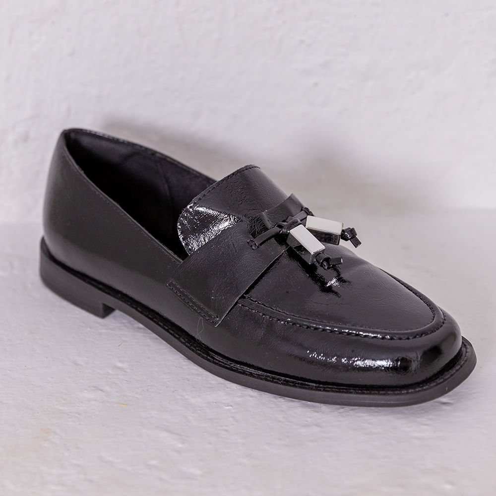 O destaque principal desse mocassim reside nas ponteiras metálicas, que adicionam um toque de atitude e sofisticação ao design clássico; As ponteiras, elaboradas em metal reflexivo, refletem a luz de maneira discreta, criando um efeito visual cativante e dinâmico que chama a atenção; O acabamento em verniz confere ao mocassim uma aparência polida e brilhante, acrescentando um aspecto refinado à peça; A versatilidade desse mocassim permite uma ampla gama de combinações de roupas, desde visuais mais formais até composições casuais e urbanas; Ele pode ser usado para dar um toque de sofisticação a um look de trabalho, adicionando um ponto de destaque a um terno ou conjunto de alfaiataria; Também pode ser incorporado a visuais mais despojados, como jeans e camiseta, para um contraste elegante; O mocassim verniz com ponteiras metálicas em material reflexivo preto é uma tendência que une o charme clássico do verniz com a modernidade das ponteiras metálicas reflexivas; Sua capacidade de elevar visuais formais e informais, juntamente com seu apelo futurista, o torna um calçado distinto e marcante para mulheres que buscam se destacar; <br>.<br><br>Produto: Mocassim Verniz com Ponteiras Metal Preto <br>Categoria: Mocassim <br>Tipo de Salto: Bloco <br>Altura do Salto: 1,8 cm<br>Tipo de Bico: Redondo <br>Material Externo: REFLEXO PRETO<br>Solado: PVC EXP<br>Forro: PU<br>Forma: Normal, compre a numeração que costuma utilizar<br>Peso: 0,466g<br>Cor: Preto<br>Gênero: Feminino.<br><br><br><br><br><br><br><br><br><br><br><br><br><br><br><br>