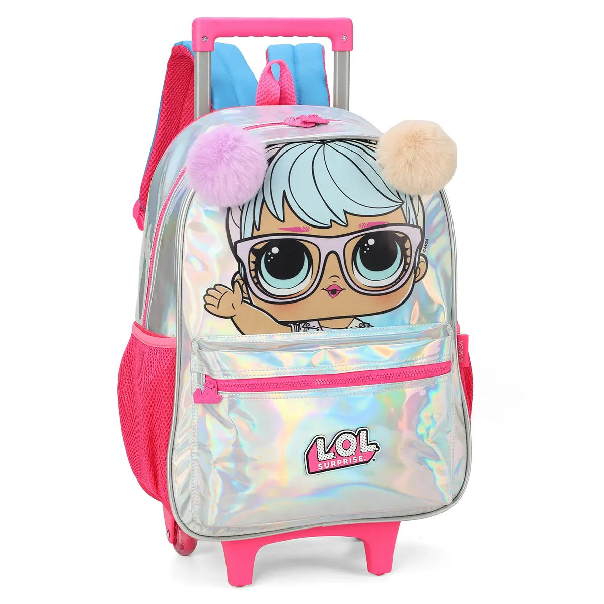 Se você busca praticidade e estilo, a mochila é uma ótima opção, com giro suave e silencioso, que facilita muito a mobilidade da criança no dia a dia escolar, assim como, o puxador retrátil que traz mais facilidade durante o transporte. Confeccionada com material de alta qualidade, ela possui acabamento reforçado nas costuras, garantindo mais resistência e durabilidade ao produto. Sua parte externa conta com bolsos organizadores super práticos, e suas alças ergômicas se encaixam pefeitamente aos ombros, proporcionando mais conforto durante o uso. Já o compartimento interno possui bastante espaço para manter cadernos, livros, tablet, estojo e demais itens escolares sempre organizados e seguros. Claro que a diversão não pode ficar de fora, por isso, a mochilete conta com uma estampa exclusiva que a criançada vai amar. *Imagens meramente ilustrativas.<br /> <br /> COMPOSTO POR:<br /> Duas Rodas<br /> Alça de mão<br /> Bolsos Externos<br /> Design Funcional<br /> Estampa Exclusiva<br /> Detalhes Holográficos<br /> Enfeite de Pompom <br /> Puxador Retrátil<br /> Pés de Apoio Frontal<br /> Cursores personalizados<br /> Espaço Interno Otimizado<br /> Etiqueta de identificação<br /> Abertura e Fechamento por Zíper<br /> Produto: Mochila de Rodinha<br /> Dimensões (AxLxP): 44x36x16cm<br /> Marca: Luxcel<br /> Material: Poliéster<br /> Garantia: Três meses para defeitos de fabricação. *Imagens meramente ilustrativas.**Produto não acompanha acessórios