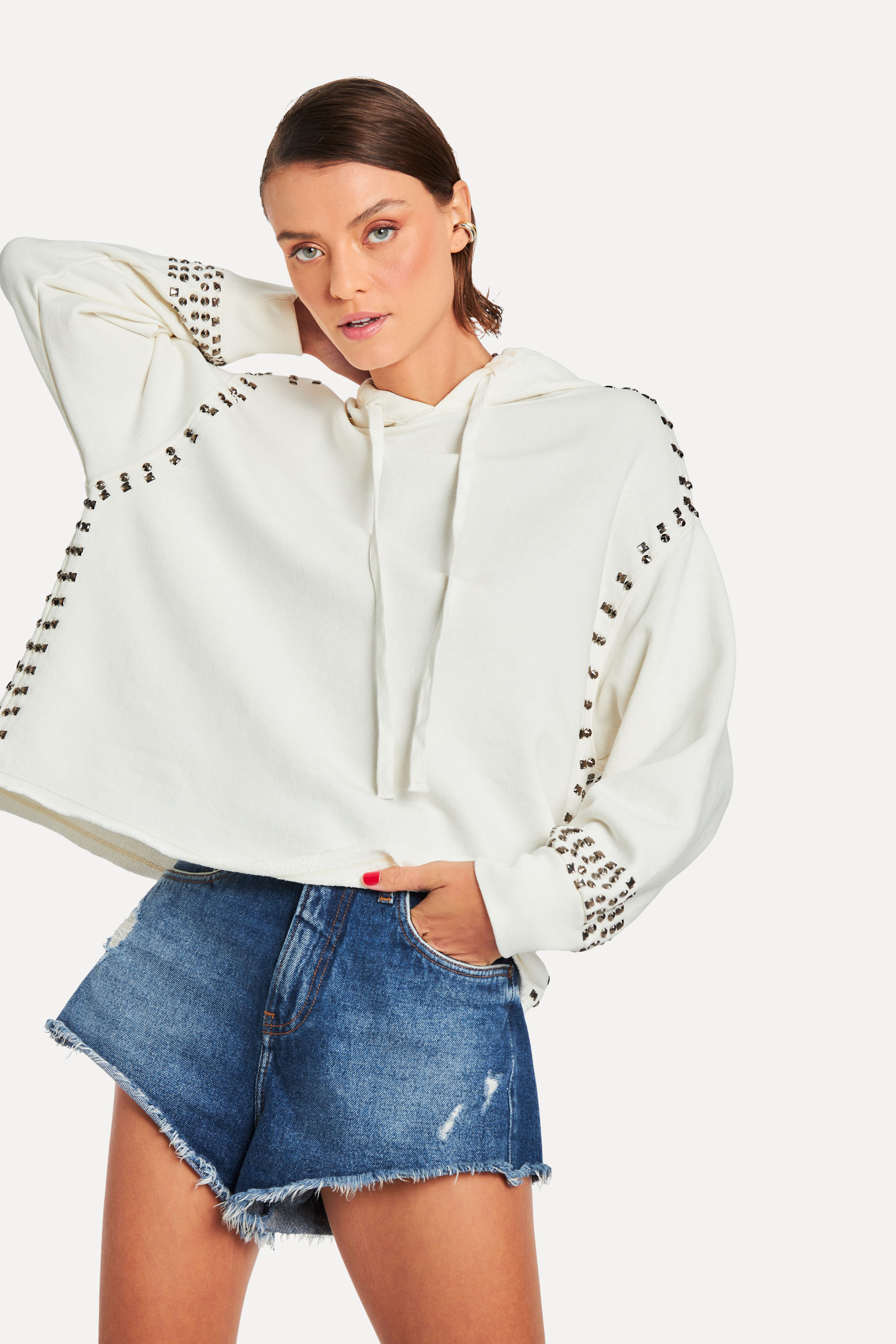 Comfy and cool! O casaco branco pedras é um <b>moletom</b> de mangas longas com comprimento padrão com aplicação de <b>metais</b>. Uma sobreposição perfeita para usar nos dias mais frios.