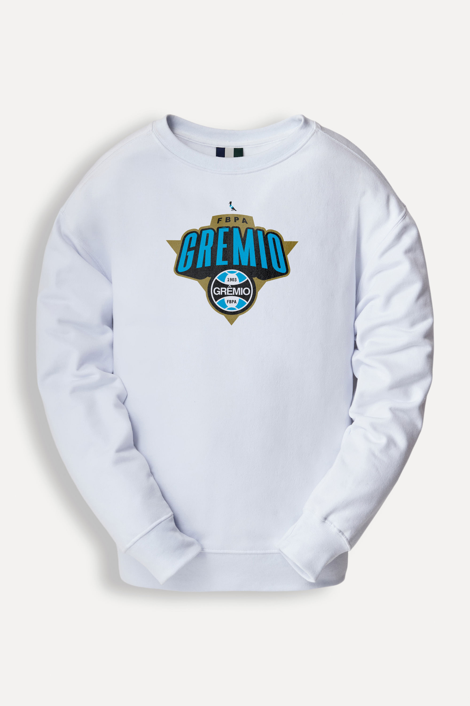 Moletom feito em algodão e poliéster de alta qualidade, garantindo muito conforto e frescor para torcer pelo Imortal Tricolor nos dias frios. Possui manga longa, gola redonda e estampa exclusiva Reserva + Grêmio Official Fashion Partner. Combine com calças e tênis. Comprando esta peça, você viabiliza cinco pratos de comida através do nosso Programa 1P5P. Casaco produzido eticamente no Brasil.