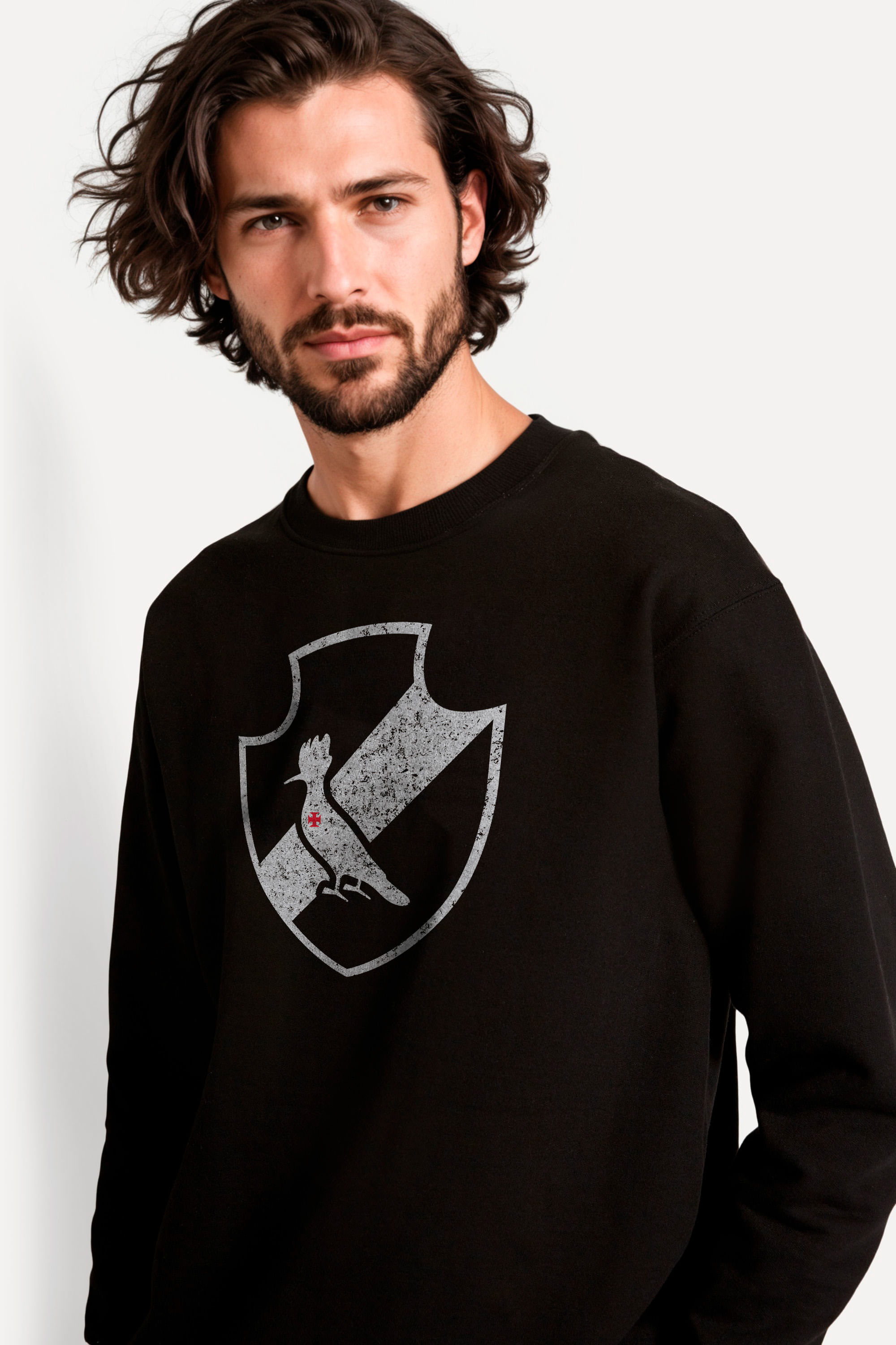 Moletom feito em algodão e poliéster de alta qualidade, garantindo muito conforto e frescor para torcer pelo Gigante da Colina nos dias frios. Possui manga longa, gola redonda e estampa exclusiva Reserva + Vasco Official Fashion Partner. Combine com calças e tênis. Comprando esta peça, você viabiliza cinco pratos de comida através do nosso Programa 1P5P. Casaco produzido eticamente no Brasil.
