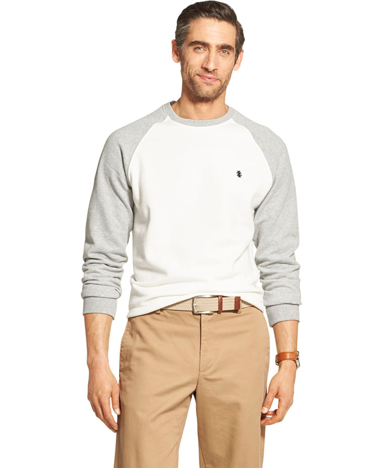 O moletom color block da IZOD é a escolha perfeita para o homem moderno. Malha macia e flexível graças à sua composição mista, traz conforto ao movimento. Suas cores em cinza médio e branco, ajudam a compor o look elegante durante os dias mais amenos, além de proporcionar sensação e aparência aconchegantes.