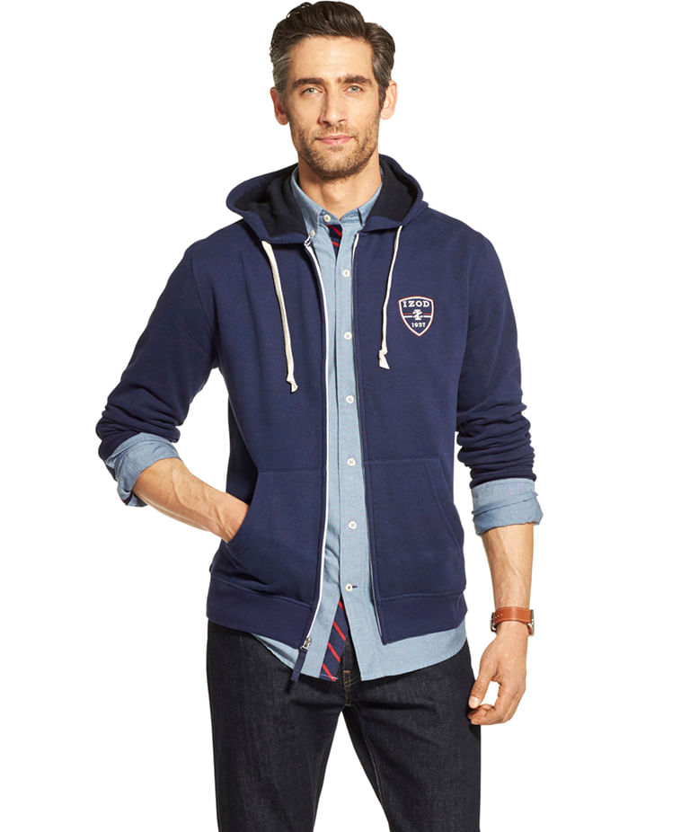 O moletom manga longa IZOD tem modelagem regular, zíper frontal e capuz. Pode ser usado também com suas mangas erguidas, proporcionando um look ainda mais moderno e despojado durante os dias mais amenos. Malha macia e flexível graças à sua composição mista, traz conforto ao movimento. Fácil de lavar e secar.