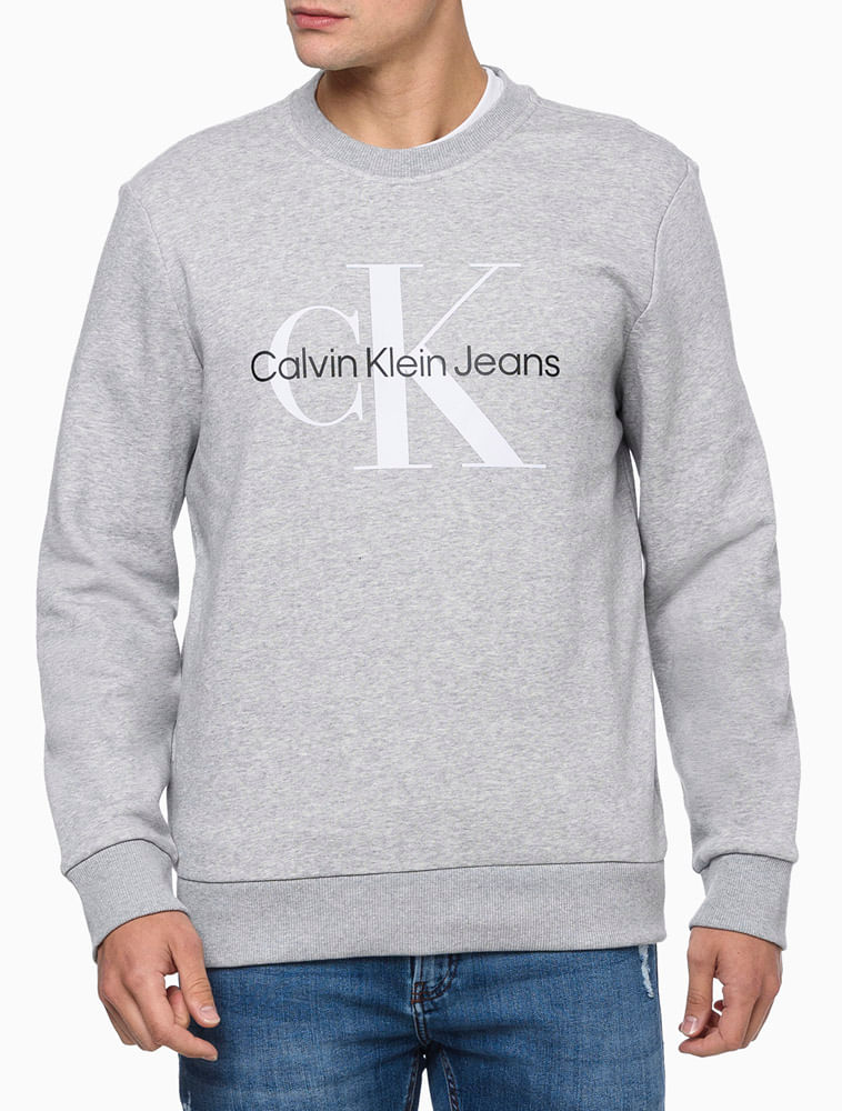 BLUSA DE MOLETOM MASCULINA, MANGA LONGA, GOLA REDONDA, COM LOGO CALVIN KLEIN JEANS NO PEITO