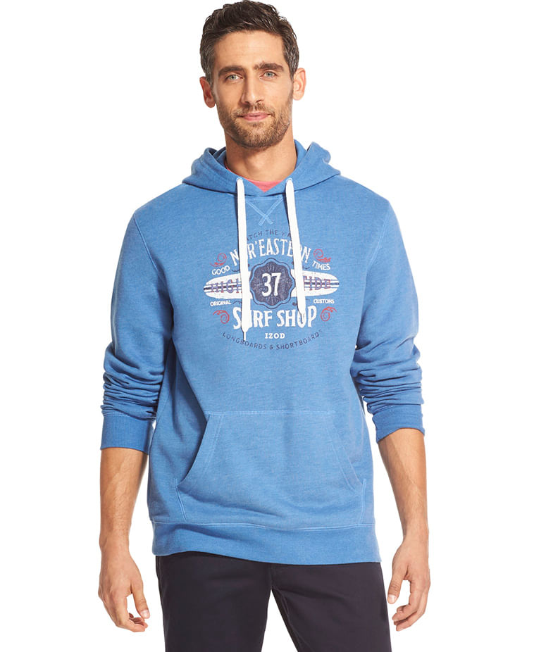 O moletom manga longa com capuz IZOD tem modelagem regular. Pode ser usado também com suas mangas erguidas, proporcionando um look ainda mais moderno e despojado durante os dias mais amenos. Malha macia e flexível graças à sua composição mista, traz conforto ao movimento. Fácil de lavar e secar.