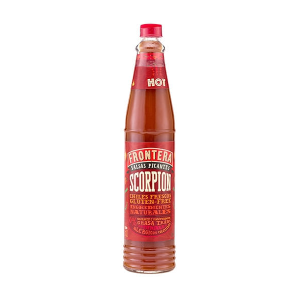 Informações técnicas do produto:<br> O Molho de Pimenta Scorpion, da Frontera, é muito mais do que apenas ardência, é também versátil e saboroso. Feito com pimentas frescas, é perfeito para toda a família, não contém glúten, glutamato, conservantes ou corantes artificiais, é um produto vegano, até quem não é fã de pimenta, vai adorar!<br> <br> Recomendação de uso:<br> Pode ser consumida a qualquer hora e lugar, com o alimento de sua preferência.<br> <br> Por que escolher esse produto?<br> Não contém glúten<br> Sem glutamato monossódico<br> Sem conservantes<br> Sem corantes<br> Produto vegano<br> Kosher<br> Nível de picância do molho: Hot<br> Sobre a marca:<br> A Frontera chegou em 2015 no mercado e mostra que nem todos os snacks são chatos. Buscam valorizar e compartilhar os sabores do mundo através dos produtos, que são perfeitos para os momentos de diversão com os amigos. A Frontera é da Latinex, uma empresa de alimentos que traz os melhores sabores do Brasil e do mundo para a mesa dos brasileiros.