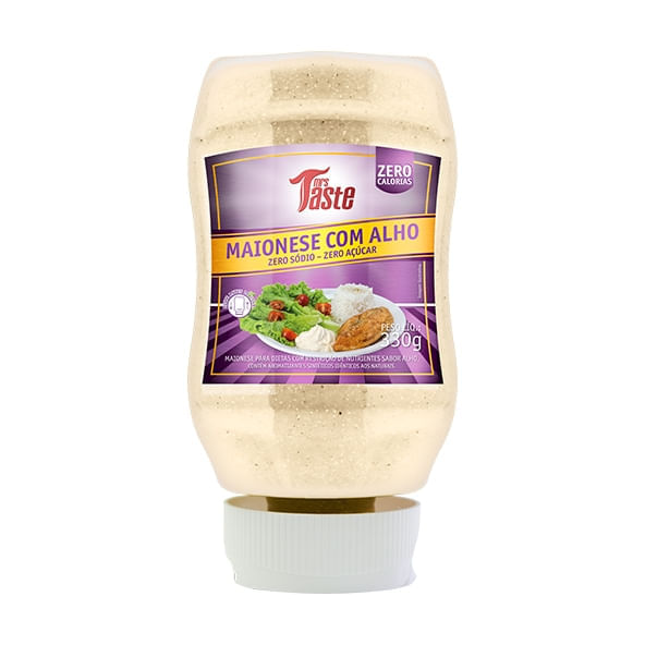 Informações técnicas do produto:<br> O Molho Maionese com alho 330g - Mrs Taste é elaborado com ingredientes sem sódio, zero glúten e lactose, não possui carboidratos, isento de gorduras, sem adição de açúcar e zero calorias. Pode ser adicionado a lanches e saladas, sendo uma opção mais saudável comparada a versão tradicional.<br> <br> Recomendações de consumo:<br> Pode ser adicionado a lanches e saladas. <br> <br> Informações sobre alergênicos:<br> Contém derivados de ovos.<br> <br> Por que escolher esse produto?<br> Zero glúten<br> Sem lactose<br> Isento de gorduras<br> Sem adição de sódio<br> Não possui açúcar<br> Zero calorias