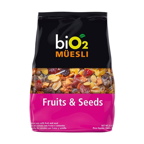 Informações técnicas do produto:<br>_x000D_ <br>_x000D_ O Müesli mix de frutas e Sementes, da biO2, com 250g é composto por flocos de quinoa, amaranto e de milho, banana passa, semente de girassol, coco, gergelim, uva- passa, amendoim, cranberry, semente de linhaça e maçã. As sementes são alimentos que apresentam um elevado teor de nutrientes ao organismo.<br>_x000D_ <br>_x000D_ Sendo esses: vitaminas do complexo B, vitamina E, minerais como manganês e são uma fonte de gordura consideradas saudáveis.<br>_x000D_ <br>_x000D_ Sobre a marca:<br>_x000D_ <br>_x000D_ A BiO2 tem mais de 10 anos de tradição e experiência e desde de sempre oferecendo alimentos verdadeiramente orgânicos e naturais. E foi a primeira marca que recebeu o certificado de barras orgânicas do Brasil, além das barras, fornece para o mercado novas opções de snacks, suplementos e mais 12 linhas de produtos.<br>_x000D_ <br>_x000D_ Recomendações de consumo:<br>_x000D_ <br>_x000D_ Ideal ser consumido todos os dias, por conta da sua composição nutricional, textura e variedade de sabores, nos lanches manhã/tarde, no trabalho ou em casa pela sua praticidade.<br>_x000D_ <br>_x000D_ O consumo deste produto deve ser acompanhado da ingestão de líquidos e estar associado a uma dieta equilibrada e hábitos de vida saudáveis.<br>_x000D_ <br>_x000D_ Informação sobre alergênicos:<br>_x000D_ <br>_x000D_ Pode conter traços de castanha de caju, castanha do Pará, amêndoa, pistache, avelã e soja.<br>_x000D_ <br>_x000D_ Por que escolher esse produto?<br>_x000D_ Isento de glúten<br>_x000D_ Não contém corantes e aromas artificias<br>_x000D_ Sem de conservantes<br>_x000D_ Produto vegano<br>_x000D_ Livre adoçantes artificiais<br>_x000D_ Zero açúcar