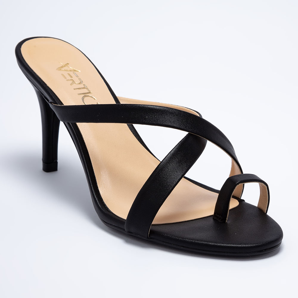 Mule Feminino Salto Fino Medio Tiras Cruzadas-Preto