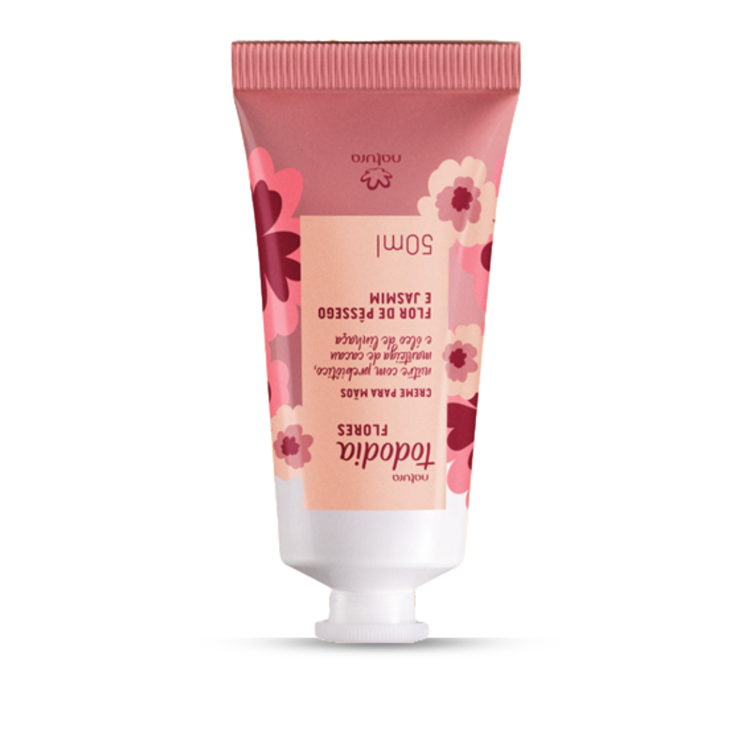 Natura Tododia Flor de Pêssego e Jasmim Creme para Mãos – 50ml<br /> <br /> O Creme para Mãos Natura Tododia Flor de Pêssego e Jasmim foi desenvolvido para combater o ressecamento e cuidar da pele com delicadeza. Sua fórmula inteligente se adapta às necessidades da sua pele ao longo do dia, oferecendo hidratação profunda e prolongada.<br /> <br /> Enriquecido com prebiótico, manteiga de cacau e óleo de linhaça, nutre até as camadas mais profundas da pele, deixando as mãos macias, protegidas e com um toque perfumado da fragrância floral inédita de flor de pêssego e jasmim.<br /> <br /> Ideal para levar na bolsa e manter o cuidado sempre à mão.<br /> <br /> Cuide das suas mãos com hidratação profunda e fragrância envolvente. O creme para mãos Natura Tododia combate o ressecamento e se adapta às mudanças da sua pele, deixando-a sempre protegida, macia e perfumada.<br /> <br /> Com prebiótico, manteiga de cacau e óleo de linhaça, sua fórmula nutre intensamente até as camadas mais profundas. Ideal para o uso diário, ele oferece cuidado e bem-estar em qualquer momento do dia.<br /> <br /> Garanta já o seu e sinta a diferença na textura da pele.