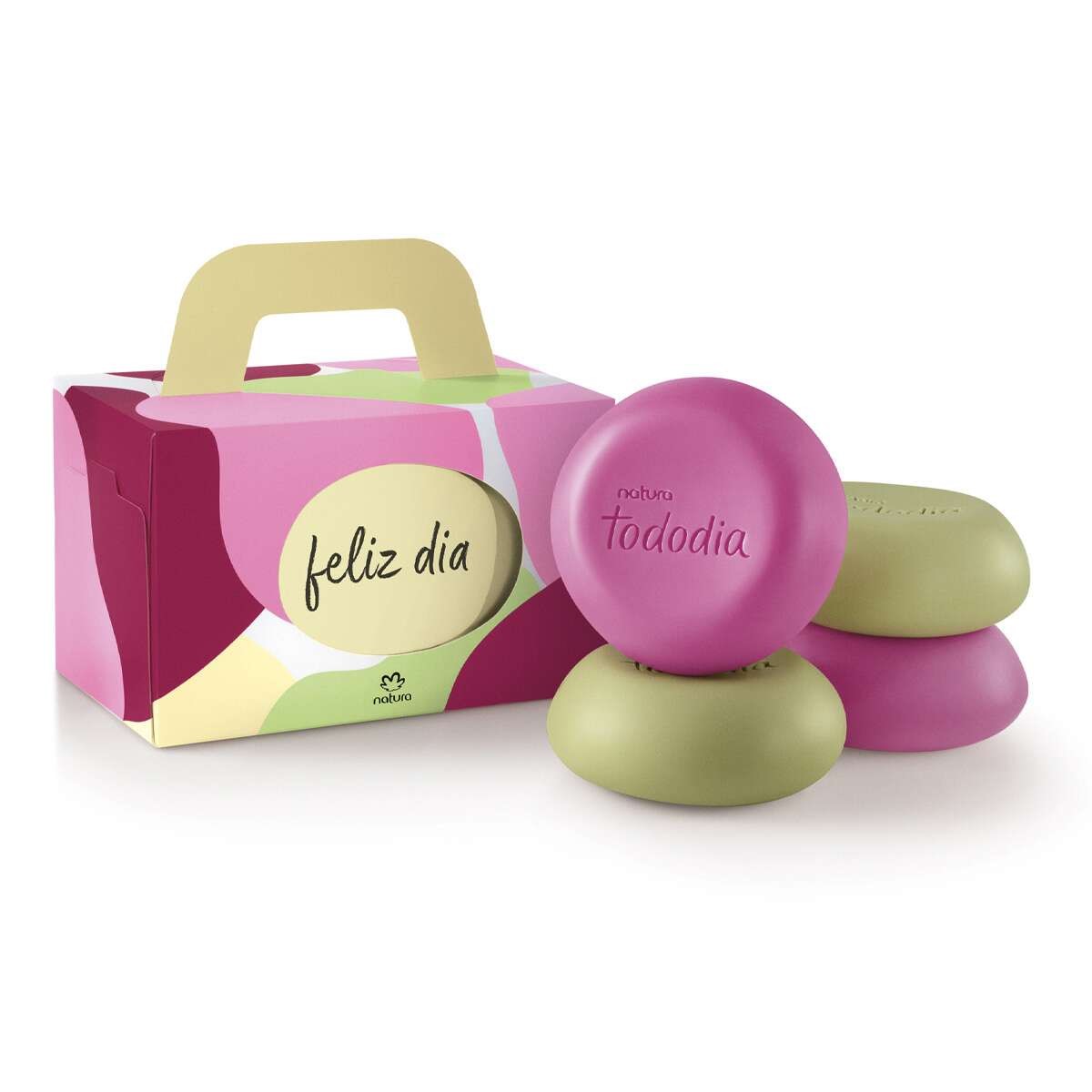0<br /> TODODIA<br /> Presente Natura Tododia Sabonetes em Barra Sortidos<br /> Cod. NATBRA-140445 - Presente Natura Tododia Sabonetes em Barra Sortidos<br /> <br /> 2 Avaliações<br /> R$ 27,90<br /> <br /> R$ 25,90<br /> -7%<br /> À vista ou em até 2x de R$ 12,95 sem juros<br /> <br /> Insira seu CEP e confirme a disponibilidade para sua região.<br /> Presenteie com os deliciosos sabonetes Natura Tododia em embalagem especial com mensagem de afeto.<br /> Deixe o dia de alguem especial mais feliz com o Presente Natura Tododia Sabonetes em Barra Sortidos, que vem com 4 sabonetes nas fragrâncias de sucesso da marca: Alecrim e sálvia e Ameixa e gengibre rosa. O presente já vem embalado em uma caixa com alça que facilita o transporte e traz uma mensagem comemorativa especial ("Feliz Dia"). É uma forma simples e completa para presentear.<br /> <br /> <br /> <br /> Conteúdo:<br /> <br /> 1 Caixa de sabonetes em barra puro vegetal sortidos com 4 unidades (2 alecrim e sálvia + 2 ameixa e gengibre rosa) de 90 g cada.