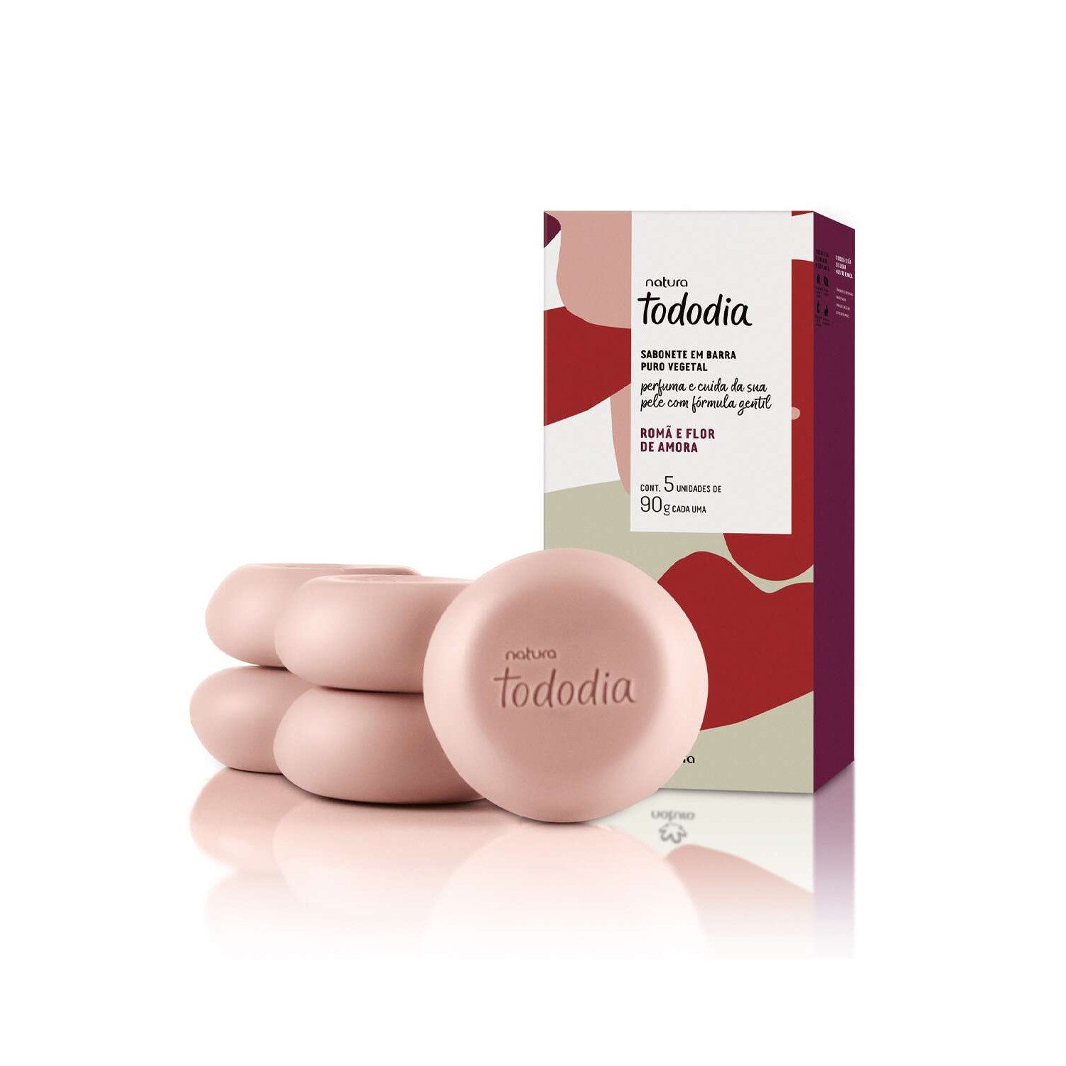 Limpa sem ressecar e perfuma a pele com a fragrância envolvente de Romã e Flor de Amora.<br /> <br /> Viva um banho cheio de sentidos com o Sabonete em Barra Puro Vegetal Tododia Romã e Flor de Amora.<br /> <br /> Sua fórmula gentil envolve uma cuidadosa combinação de ingredientes de origem natural que mantém a hidratação da sua pele e a deixa perfumada.<br /> <br /> • Limpeza profunda, sem ressecar.<br /> • Pele protegida e perfumada.<br /> • Textura cremosa e deliciosas nuvens de espuma perfumada.<br /> • Fragrância marcante e envolvente com notas adocicadas frutais inspirada em romã e flor de amora.<br /> • Rende muitos banhos para mais momentos de autocuidado.