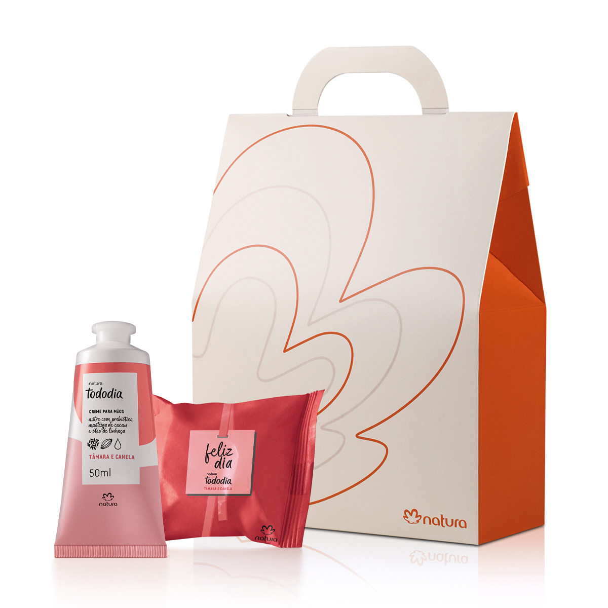presente delicado com itens para levar na bolsa ou nécessaire.<br /> <br /> o Presente Natura Tododia Tâmara e Canela vem com 2 produtos para cuidar da pele. o sabonete em barra promove uma limpeza delicada e perfumada. já o creme para mãos deixa a pele protegida e intensamente nutrida.<br /> <br /> contém<br /> <br /> creme nutritivo para as mãos 50 ml<br /> <br /> sabonete em barra 90 gramas<br /> <br /> e envelope de presente.
