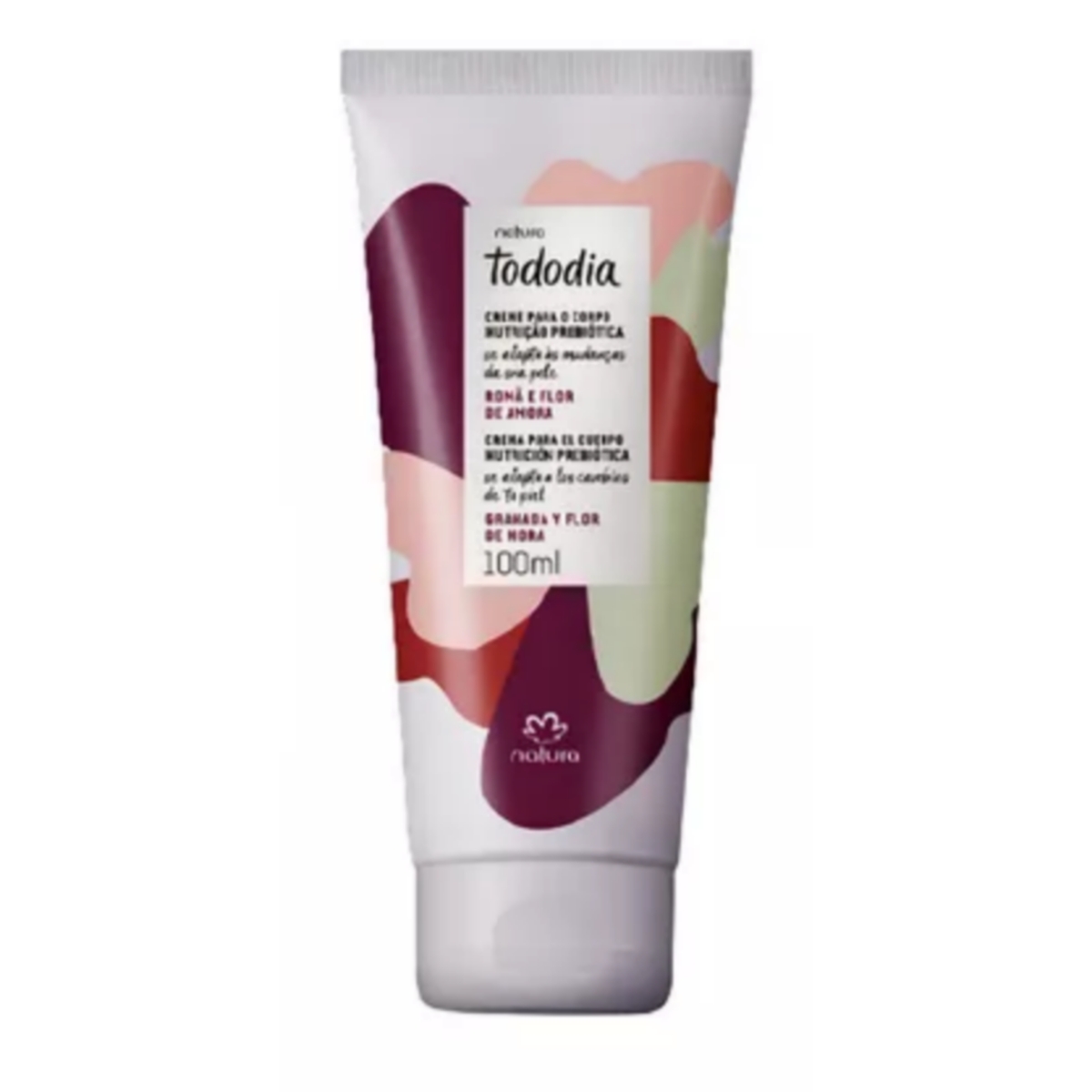 Creme Desodorante Nutritivo para o Corpo Tododia Romã e Flor de Amora 100mlNutre profundamente a pele e perfuma com notas adocicadas e frutais. Pele perfumada, firme e ultramacia com o poder da nutrição prebiótica, que age na microbiota e fortalece os microrganismos de defesa da pele. Com prebiótico, manteiga de cacau e óleo de linhaça, combinação de ingredientes de origem natural que hidrata até as camadas mais profundas.Benefícios:• Pele mais firme e ultramacia.• Hidrata até as camadas mais profundas da pele.• Nutrição prebiótica: age na microbiota fortalecendo os microrganismos de defesa da pele.• Textura cremosa, fácil de espalhar e absorve rapidinho.• Fragrância marcante e envolvente com notas adocicadas e frutais.• Com prebiótico, manteiga de cacau e óleo de linhaça.• Produto vegano.