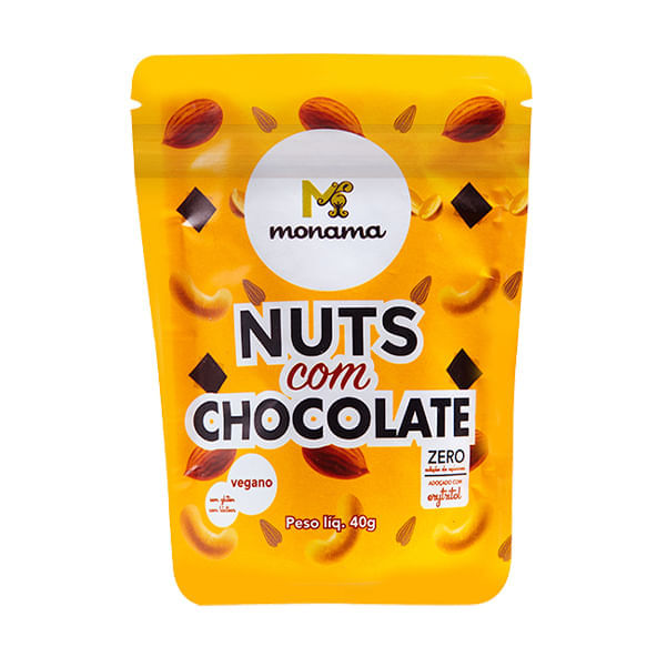 O Nuts com chocolate da Monama, é uma ótima opção de lanchinho saudável e vegano. É uma opção simples e prática para levar na bolsa e comer a qualquer hora do dia.