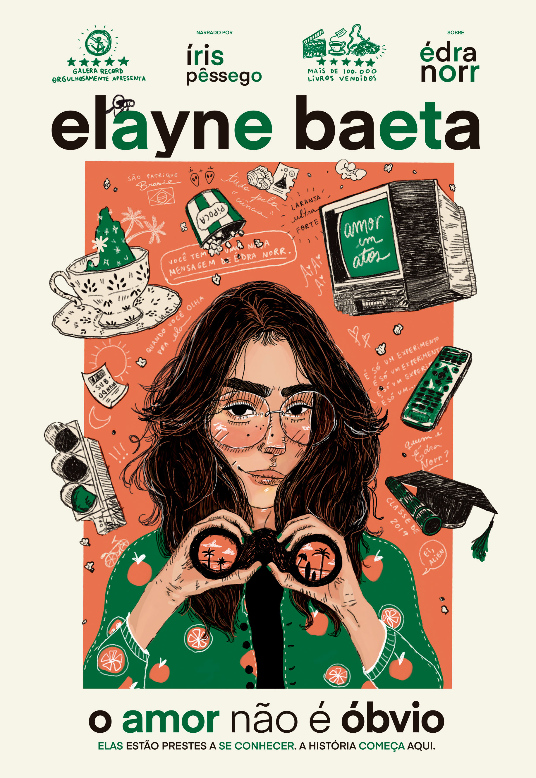Garota conhece garota e se apaixona por ela. Em nova edição, o fenômeno O amor não é óbvio tem capa e projeto gráfico inéditos, além de ilustrações atualizadas. Best-seller nacional com mais de 100 mil exemplares vendidos, O amor não é óbvio é o primeiro volume da série Duo Laranja forte.   Íris Pêssego só pensa naquilo. Não naquilo que você está pensando, apesar de esse ser o assunto que inflama os ciclos hormonais dos alunos no Colégio São Patrique. Sabe como é, com a formatura chegando, ninguém quer sair “ileso” do ensino médio. Mas Íris não se importa com o fato de que todo mundo está obcecado com a própria virgindade... Porque ela está ocupada demais pensando naquilo: o motivo pelo qual Cadu Sena e Camila Dourado terminaram. Não que ela não saiba o motivo. Saber ela sabe (todo mundo sabe), só não o entende. Cadu, seu amor platônico (e o de todo mundo), de repente é carta fora do baralho. Camila decidiu, às vésperas da formatura, aparecer de mãos dadas pelos corredores do colégio com uma garota. Sim, você leu certo. Garot-a. Com “a” no final. Antes disso tudo acontecer, a coisa mais emocionante vivida por Íris eram as noites na frente da TV na casa de sua vizinha e melhor amiga (idosa), enquanto esconde esse fato da sua outra melhor amiga (adolescente). Agora tudo está de cabeça para baixo. A vida de Íris virou uma novela e ela vai se meter nas maiores enrascadas para responder a uma única pergunta: quem é Édra Norr? E o problema de estar se perguntando isso é que, assim como o amor, a resposta não será nada óbvia. Bicicletas. Ensaios de formatura. O confuso, instigante, amedrontador, divertido e cheio de altos e baixos processo de descoberta. Esse é um livro sobre o amor. Esse é um livro para que meninas que amam meninas achem esse amor bonito.
