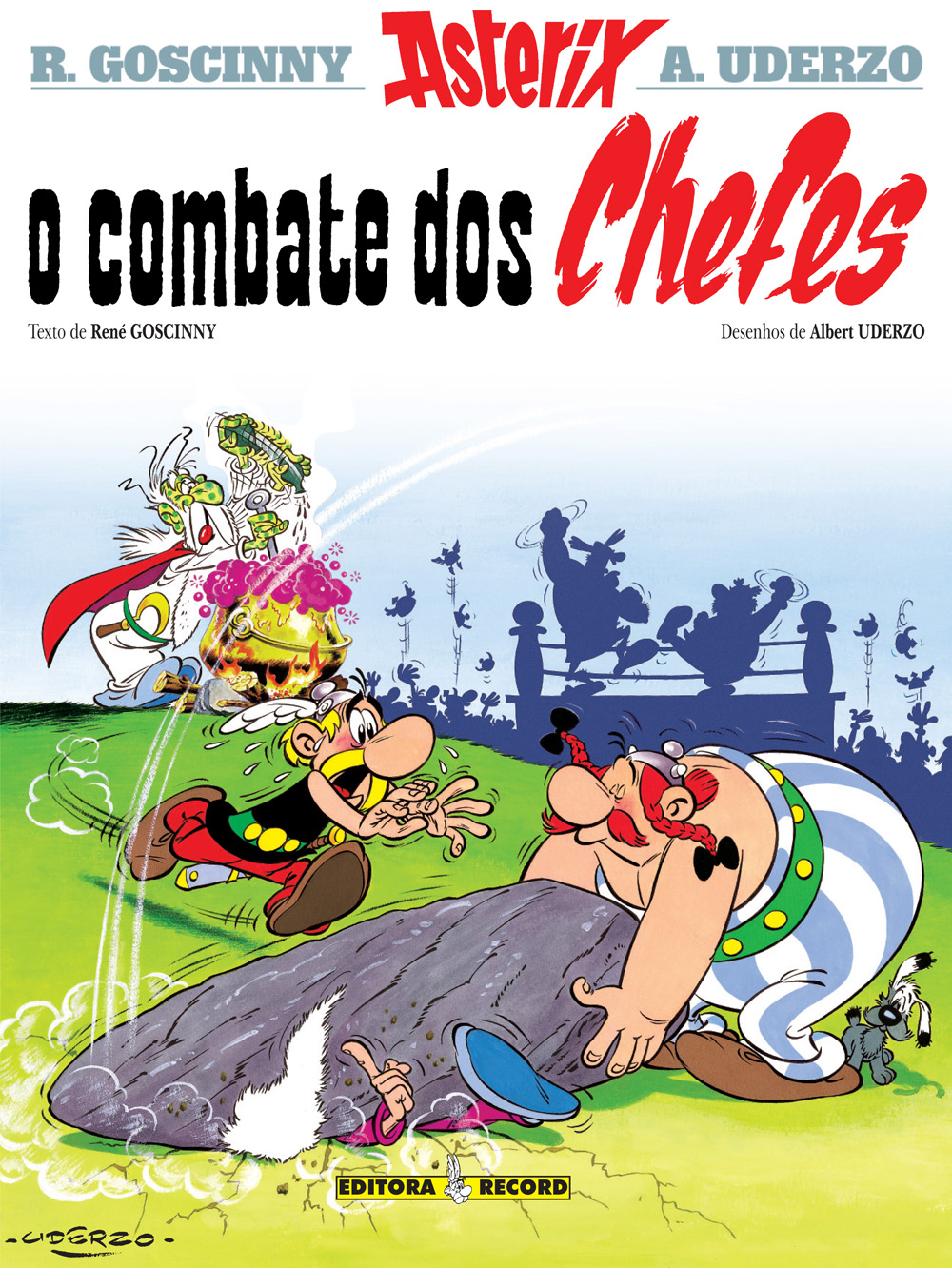 Grande problema! Panoramix foi atingido com um dos menires de Obelix e perdeu o juízo. E, enquanto o druida não recuperar a memória, a Aldeia fica privada de poção mágica e à mercê de um ataque. É o momento escolhido por Tomix, chefe galo-romano, para desafiar Arbacrucix para o antigo ritual do Combate dos Chefes. Se o nosso amigo for vencido, o povoado ficará sob a tutela de Tomix e, assim, dos Romanos. E sem o druida para torná-lo invencível com a sua poção mágica, ele conseguirá evitar a tomada da Aldeia? * Criada pela dupla Albert Uderzo e René Goscinny, a primeira história das Aventuras de Asterix, O Gaulês foi publicada na página da 20 da revista Pilote em 1959. A história dos Irredutíveis Gauleses foi um sucesso imediato e a revista vendeu mais de 300mil exemplares. Tamanha popularidade rendeu, em 1961, a publicação do primeiro álbum solo: Asterix, o Gaulês. Desde então, Asterix não para de crescer: são mais de 30 álbuns traduzidos para 107 idiomas, mais de 10 filmes e um parque temático!  As aventuras de Asterix  são publicadas no Brasil pela Editora Record desde 1980.