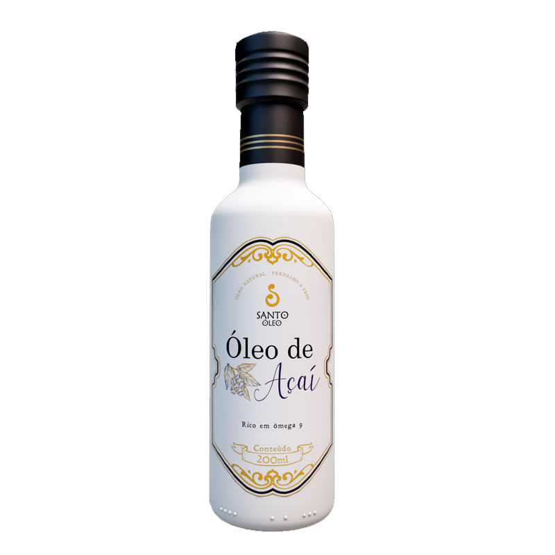 Informações técnicas do produto:<br> O Óleo de Açaí, da Santo Óleo, 200ml é um produto final da prensa a frio do fruto açaizeiro, originário da floresta amazônica. Mais de 70% de sua composição é formada por ácidos graxos insaturados, sendo que 50% destes, são ácidos graxos monoinsaturados ômega 9. Não apresenta alérgenos, produtos geneticamente modificados e ingredientes de origem animal.<br> <br> Recomendações de consumo:<br> Pode ser utilizado em diferentes preparações culinárias, até mesmo em preparações quentes, como molhos para saladas ou carnes.<br> <br> Por que escolher este produto?<br> Isento de glúten<br> Sem lactose<br> Livre de corantes e conservantes<br> Sem gorduras trans<br> Rico em ômega 9<br> Sem ingredientes de origem animal<br> Sobre a marca:<br> A Santo Óleo, é uma indústria especializada em extrair o melhor de cada produto natural, seja na linha óleo ou na linha seca. Todos os seus produtos são 101% naturais, pois não aceitam que seja misturado qualquer tipo de ingrediente não natural ou agente químico em sua matéria prima. Seu lema é aliar saúde e bem-estar, a um produto de grande qualidade para a saúde.