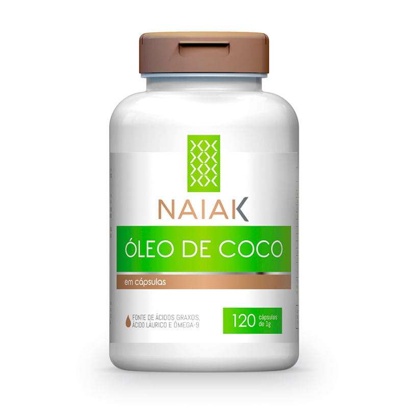 Informações técnicas do produto:<br> O Óleo de Coco, da Naiak, contém 120 cápsulas com 1g de óleo de coco cada. Este produto é extraído do coco fresco e prensado a frio para manter suas propriedades nutricionais.<br> <br> Recomendação de uso:<br> <br> Consumir 2 cápsulas ao dia ou conforme orientação do médico ou nutricionista.<br> <br> Motivos para escolher esse produto?<br> Produto natural<br> Sem glúten<br> Sem lactose<br> Extravirgem<br> Informações sobre a marca:<br> A Naiak é uma empresa farmacêutica, de origem brasileira, que oferece uma linha completa de produtos nutracêuticos e alimentos funcionais voltados para a beleza e o bem-estar. Buscam cuidar da saúde de dentro para fora. Extraem seus ativos da natureza que em conjunto com a sua alta tecnologia oferecem produtos os quais contribuem para a vitalidade, qualidade de vida e autoestima.
