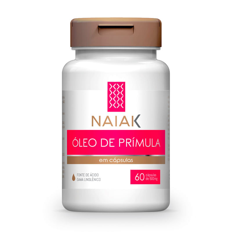 Informações técnicas do produto:<br> O Óleo de Prímula, da Naiak, é um óleo vegetal obtido das sementes da espécie Oenothera Biennis, nativa da América do Norte.<br> <br> Fornece 500 mg de óleo de prímula por cápsula, livre de conservantes ou corantes artificiais, sem glúten e lactose.<br> <br> Recomendação de consumo:<br> Ingerir 2 cápsulas, 2 vezes ao dia. O consumo máximo não deve ultrapassar 4 cápsulas ao dia.<br> <br> Gestantes, nutrizes, crianças com até 3 (três) anos, idosos e portadores de enfermidades somente devem consumir esse produto sob orientação de nutricionista ou médico. Manter fora do alcance das crianças.<br> <br> Por que escolher esse produto:<br> Não contém glúten<br> Não contém lactose<br> Sem adição de conservante<br> Sem adição de corantes<br> 100% natural<br> Pronto para consumo<br> Sobre a marca:<br> A Naiak é uma empresa brasileira, especialista em desenvolver uma linha completa de nutracêuticos e alimentos funcionais direcionados para a beleza e o bem-estar, além de seguir conceito in&out, que é a garantia de encontrar o verdadeiro equilíbrio de cuidar da sua saúde de dentro para fora.