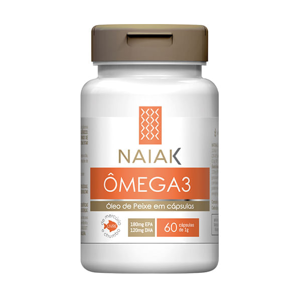 Informações técnicas do produto:<br> O Ômega 3, da Naiak, 60 cápsulas, é um suplemento composto de óleo de peixe que fornece 120mg de EPA e 180 mg de DHA na porção. <br> <br> Recomendação de consumo:<br> Ingerir 2 cápsulas duas vezes ao dia, antes das principais refeições ou conforme orientação de nutricionista ou médico. O consumo não dever ultrapassar 6 cápsulas por dia.<br> <br> Por que escolher esse produto:<br> Não contém glúten<br> Não contém lactose<br> Pronto para consumo<br> 120 mg de DHA por porção<br> 180mg de EPA por porção<br> Sobre a marca:<br> A Naiak é uma empresa farmacêutica, de origem brasileira, que oferece uma linha completa de produtos nutracêuticos e alimentos funcionais voltados para a beleza e o bem-estar. Buscam cuidar da saúde de dentro para fora. Extraem seus ativos da natureza que em conjunto com a sua alta tecnologia oferecem produtos os quais contribuem para a vitalidade, qualidade de vida e autoestima.