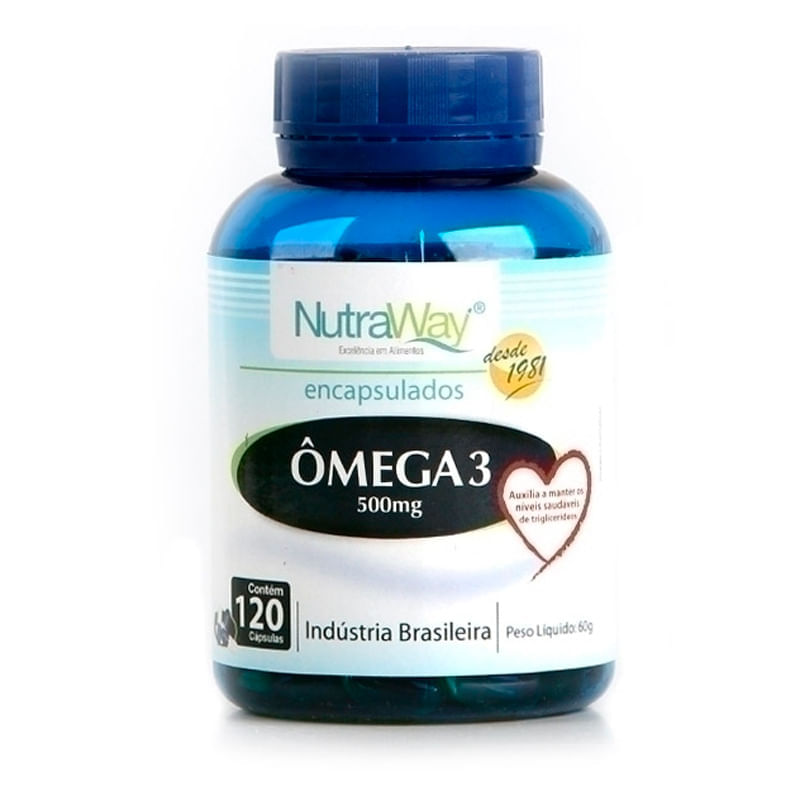 <p>"O Ômega 3, da NutraWay é um acido graxo pertencente à família das gorduras poli-insaturadas, e seus derivados, o EPA (ecosapentaenoico) e DHA (ácido docosahexaenoico). Eles são considerados ácidos graxos essenciais, pois necessariamente devemos obtê-los por meio da nossa alimentação ou na forma suplementada, já que o nosso organismo não consegue produzi-los.</p>_x000D_ <p> </p>_x000D_ <p>E ainda, é livre de metais pesados como o mercúrio, que é tóxico para o nosso corpo. </p>_x000D_ <p> </p>_x000D_ <p>Recomendação de consumo:</p>_x000D_ <p> </p>_x000D_ <p>Tomar 2 cápsulas 2 vezes ao dia antes das principais refeições.</p>_x000D_ <p> </p>_x000D_ <p>Dica: prefira consumir o seu Ômega 3 antes das refeições para evitar desconfortos gástricos. E lembre-se que para um melhor resultado, tenha também uma alimentação balanceada e hábitos de vida saudáveis.</p>_x000D_ <p> </p>_x000D_ <p>Sobre a marca:</p>_x000D_ <p> </p>_x000D_ <p>A NutraWay é uma Indústria alimentícia que visa o bem-estar, atuando em todo o Brasil desde 1981, sempre dando prioridade para a qualidade dos produtos, bom atendimento e inovação nas tecnologias de produção. Seus produtos combinam ingredientes saudáveis, nutritivos e 100% naturais, mantendo a responsabilidade com o meio ambiente e a natureza.</p>