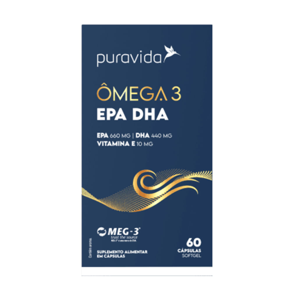 <p>O <strong>Ômega 3 Puravida, </strong>é um suplemento constituído por óleo de peixe concentrados em ácido eicosapentaenóico (EPA) e o ácido docosahexaenóico (DHA), que são considerados ácidos graxos.</p> <p>Produto certificado MEG-3®, a fonte mais confiável de ômega-3 EPA e DHA, entrega alta qualidade, elevado nível de pureza e um fornecimento sustentável de ômega-3 derivado do óleo de peixe.</p> <h2><strong>Sugestão de consumo:</strong></h2> <p>Consuma duas cápsulas ao dia, com as principais refeições, ou conforme orientação de médico ou nutricionista.</p> <h2><strong>Motivos para escolher o produto:</strong></h2> <ul> <li>Contém 660mg de EPA e 440mg de DHA na porção;</li> <li>Matéria prima com alto grau de pureza;</li> <li>Certificação internacional de excelência – MEG 3;</li> <li>Contém vitamina E, que possui ação antioxidante;</li> <li>Isento de contaminação por metais pesados;</li> <li>Sem açúcar;</li> <li>Aroma de limão para menos retrogosto.</li> </ul> <h2><strong>A Marca</strong></h2> <p><strong>Puravida </strong>é uma empresa que nasceu com o propósito de facilitar a prática de um estilo de vida orgânico. Acreditam que a qualidade daquilo que escolhemos comer, pode afetar o funcionamento do nosso corpo, funcionamento dos órgãos, humor, foco e mente. Através de suas vitaminas, suplementos, cosméticos, granolas, colágenos e outros produtos elaborados com ingredientes de altíssima qualidade podem contribuir com a sinergia do corpo.</p>