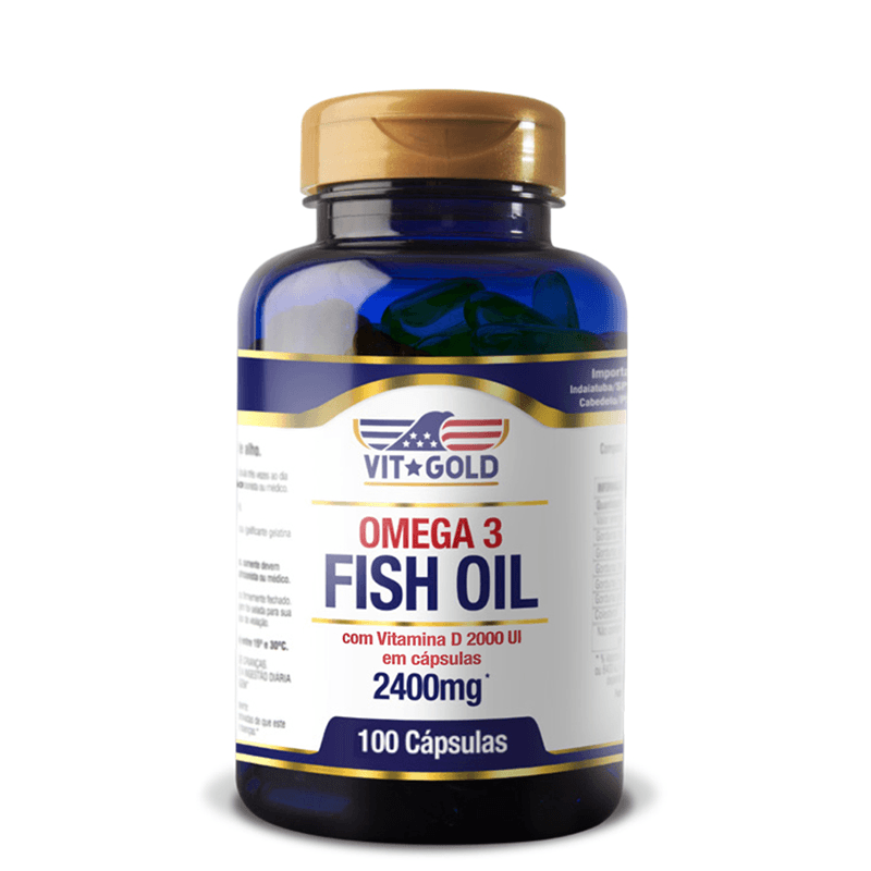 <p>O <strong>Ômega 3 Fish Oil Vitamin D Vitgold 2400mg com 100 cápsulas</strong> é um suplemento alimentar composto por Óleo de Peixe e vitamina D. </p> Sobre os ingredientes: <p>Pessoas alérgicas a peixes e crustáceos devem evitar o consumo deste produto. Gestantes, nutrizes e crianças até 3 (três) anos, somente devem consumir este produto sob orientação do nutricionista ou médico. Não contém Glúten.</p> Sugestão de consumo: <p>Ingerir 1 (uma) cápsula duas vezes ao dia.</p> Motivos para escolher o produto: <ul> <li> <p>Suplemento alimentar</p> </li> <li> <p>Óleo de Peixe</p> </li> <li> <p>vitamina D</p> </li> </ul> Sobre a marca: <p>A <strong>VitGold</strong>‚ é uma empresa de suplementos vitamínicos e minerais dos Estados Unidos, com atividades no Brasil desde 1994. Seus produtos são produzidos em laboratórios credenciados e validados por órgãos como a FDA nos Estados Unidos e a ANVISA no Brasil, garantindo a qualidade dos suplementos.</p>